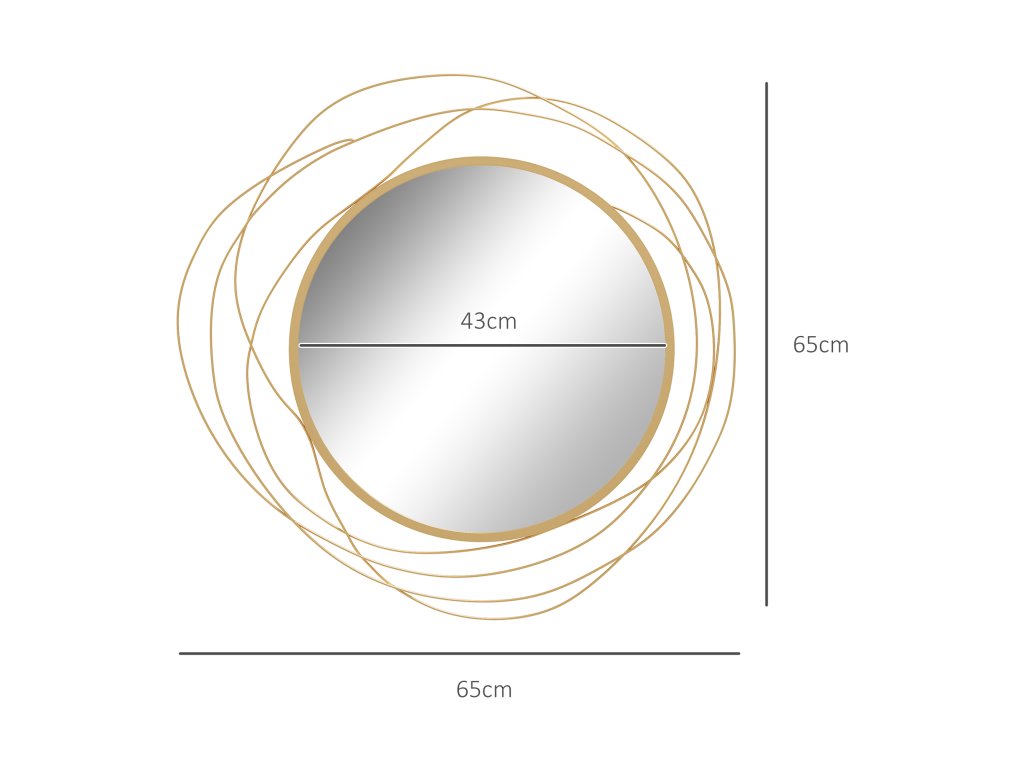 HOMCOM Nástěnné zrcadlo Ø65 cm s kovovým rámem, dekorativní zrcadlo do předsíně, nástěnné umění do obývacího pokoje a ložnice ve zlaté barvě | Aosom.de