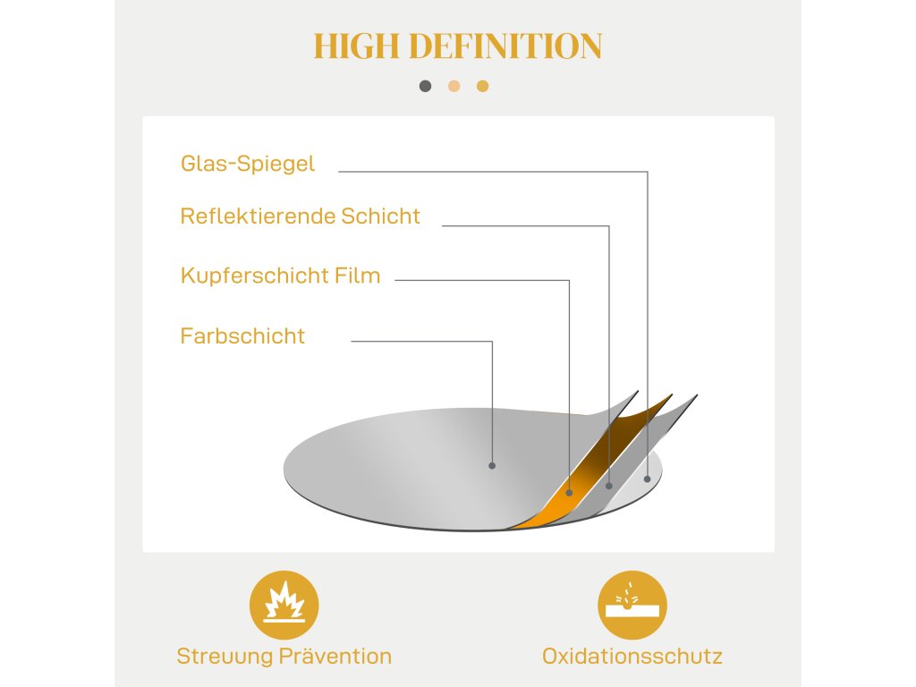 - Vysoce kvalitní zrcadlo: Nástěnné zrcadlo je vyrobeno ze silného vícevrstvého skla, které zůstává trvale čiré a je mimořádně vkusnou ozdobou