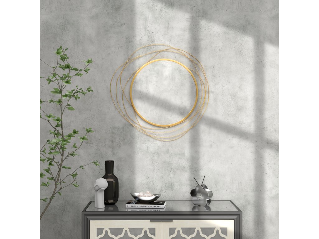 - Jedinečná nástěnná dekorace: Tato nástěnná dekorace plná charakteru se vyznačuje kulatým zrcadlem s kovovým rámem asymetrické siluety, které dodá každé stěně zvláštní nádech a zvýší estetický vzhled každé místnosti