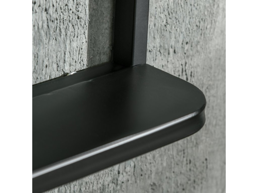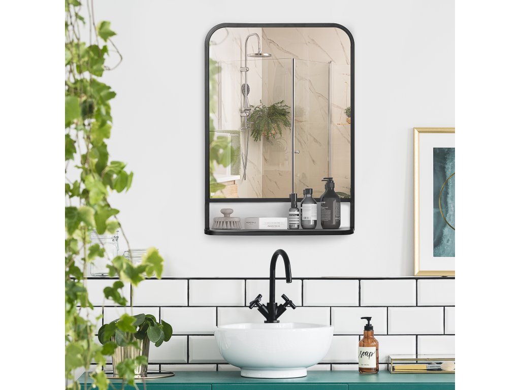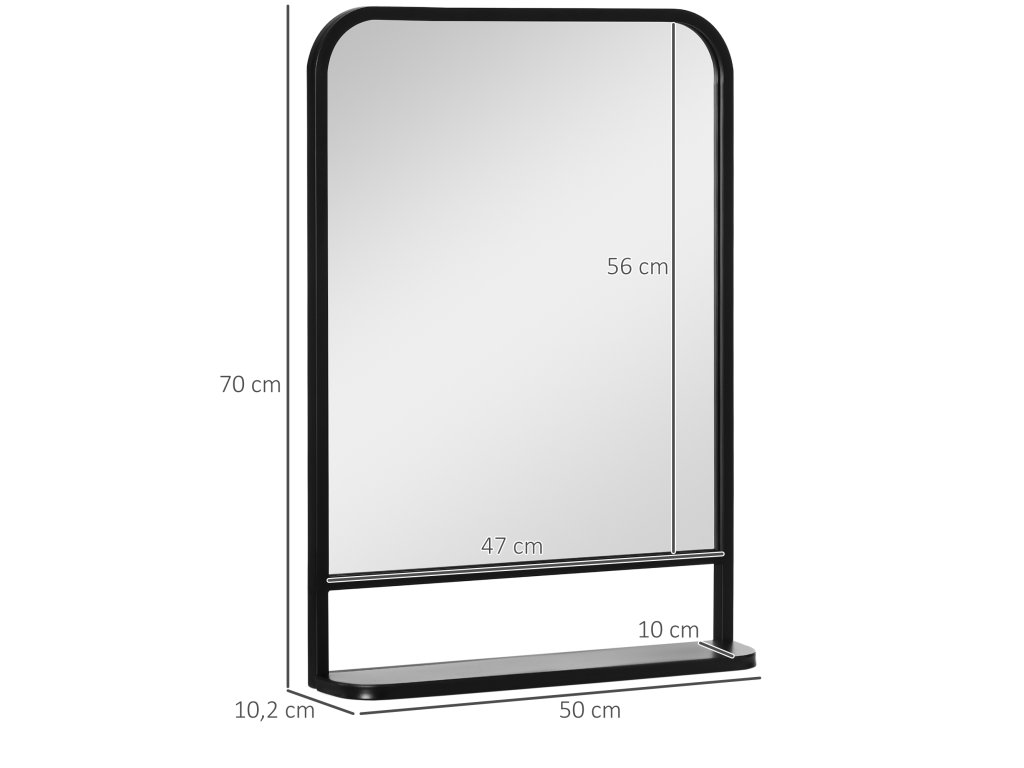 - Vysoce kvalitní materiál: Zrcadlo s poličkou je čiré, odolné proti opotřebení a zasazené do kovového rámu pro větší stabilitu.