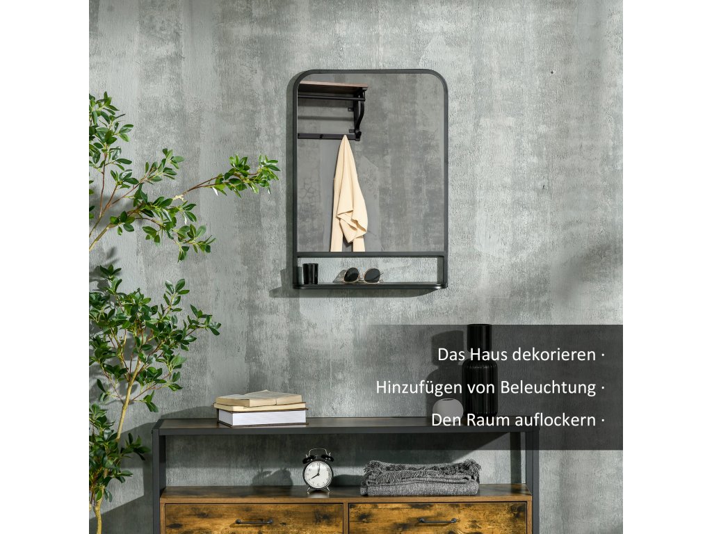HOMCOM Nástěnné zrcadlo s policí 70x50cm moderní elegantní obdélníkové černé do obývacího pokoje a předsíně | Aosom.de