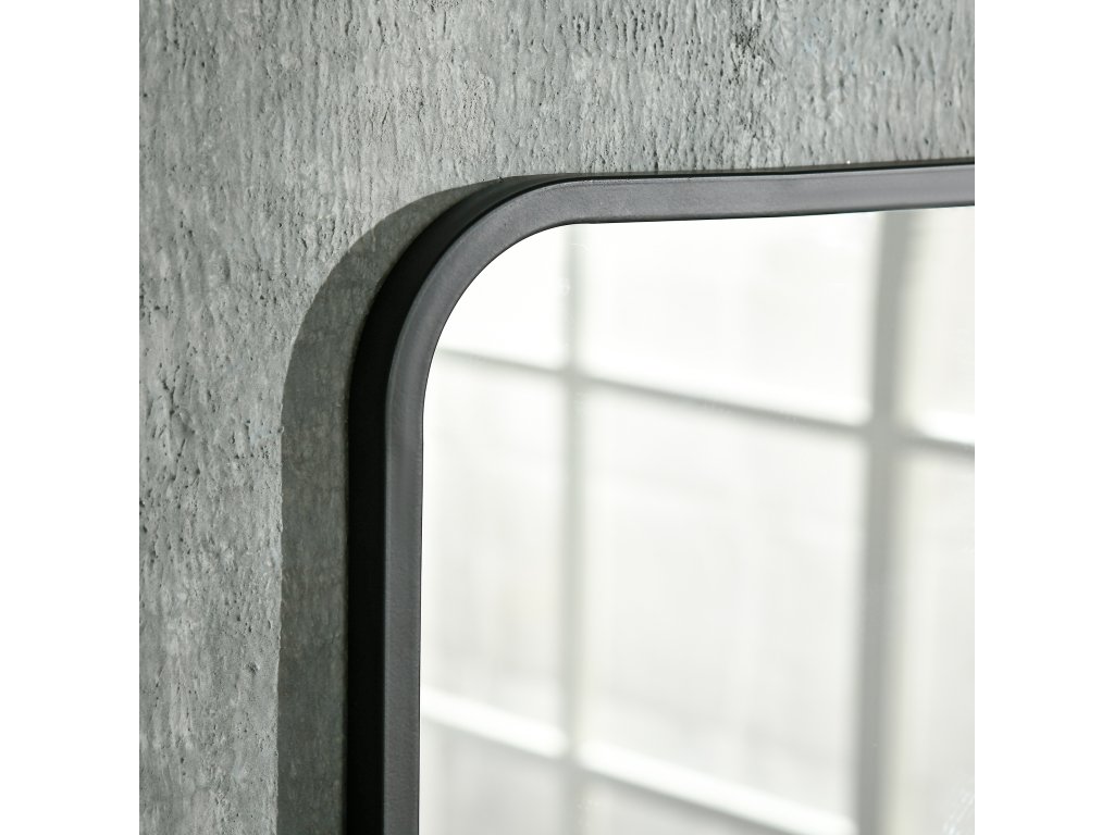 - ✔ Typ: obdélníkové skleněné zrcadlo s kovovým rámem a zaoblenými rohy