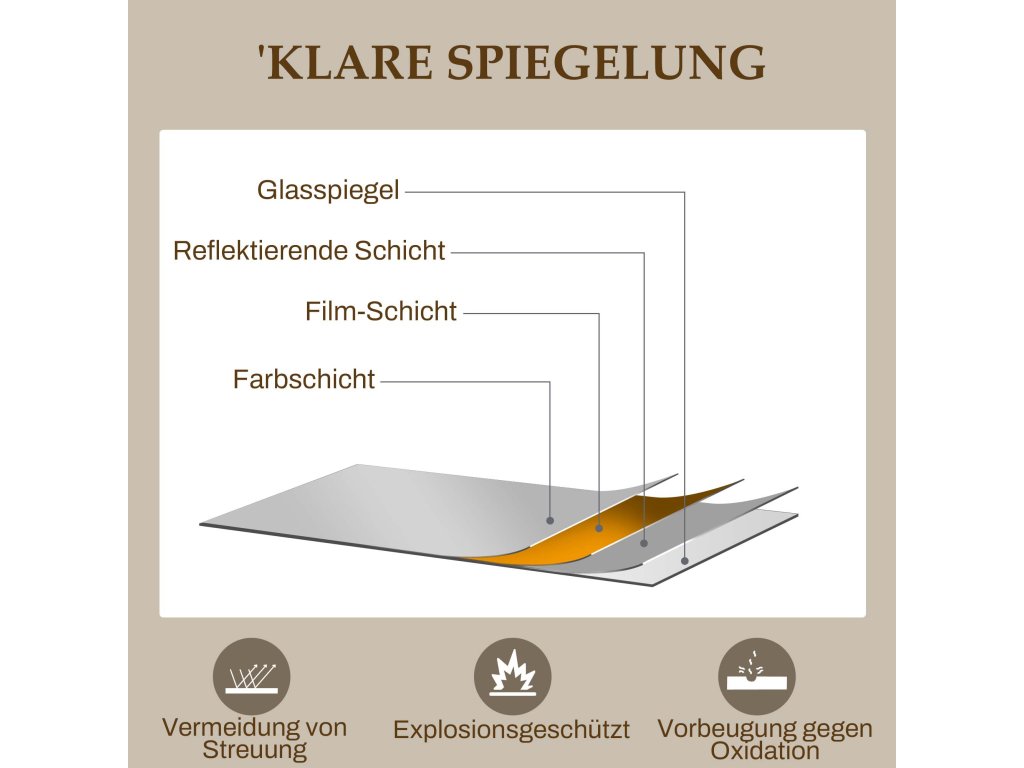 - Odolná kvalita: Toto dekorativní nástěnné zrcadlo je vyrobeno ze silného, vysoce kvalitního skla s nerozbitnou fólií a robustního kovového rámu s práškovou povrchovou úpravou a nabízí výjimečnou čistotu odrazu i zvýšenou odolnost a bezpečnost