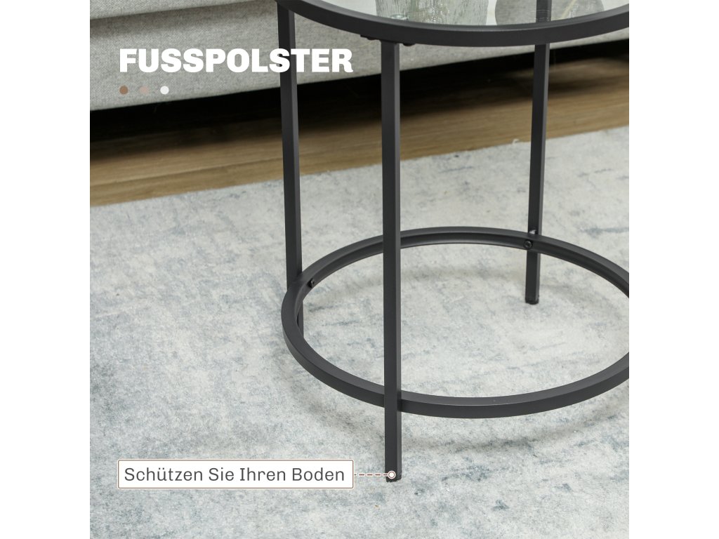 HOMCOM Odkládací stolek kulatý se skleněnou deskou, kovový rám, konferenční stolek, noční stolek do obývacího pokoje, ložnice, černý, Ø48 x 54,7 cm