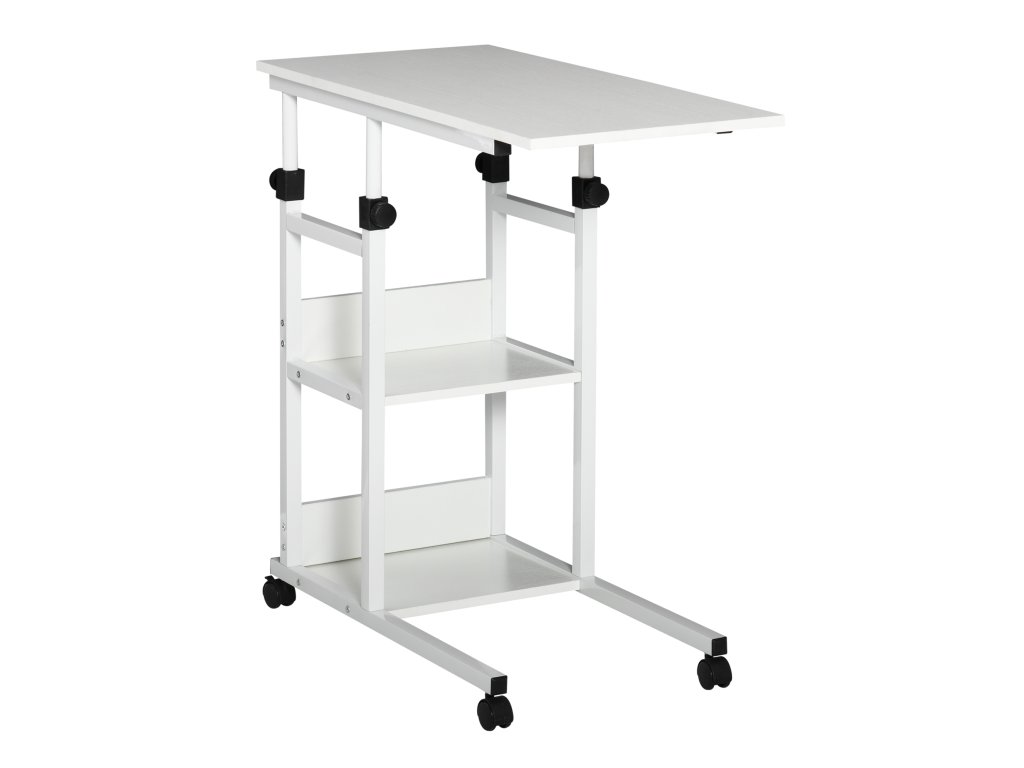 HOMCOM Odkládací stolek s kolečky Výškově nastavitelný konferenční stolek, 2 police, dřevotříska E1, bílá, 80x40x72-82 cm| Aosom