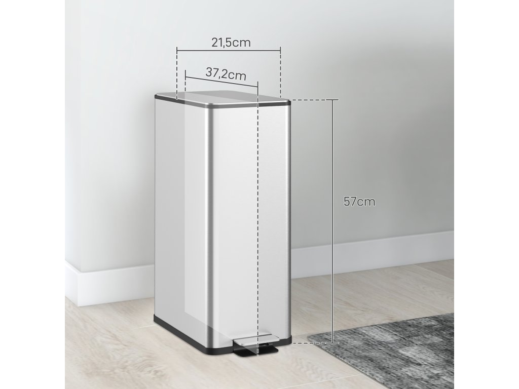 Udržujte svou kuchyň čistou a bez zápachu s odpadkovým košem HOMCOM 20 l s víkem! Mechanismus soft-close a uzávěr odolný proti zápachu zajišťují svěžest uvnitř. Tento robustní a stylový koš je vyroben z nerezové oceli odolné proti otiskům prstů a přináší do vaší kuchyně organizaci, styl a kvalitu. Praktický nášlapný pedál a vyjímatelný vnitřní koš usnadňují jeho používání a čištění. Dokonalá kombinace funkčnosti a moderního designu pro vaši domácnost.