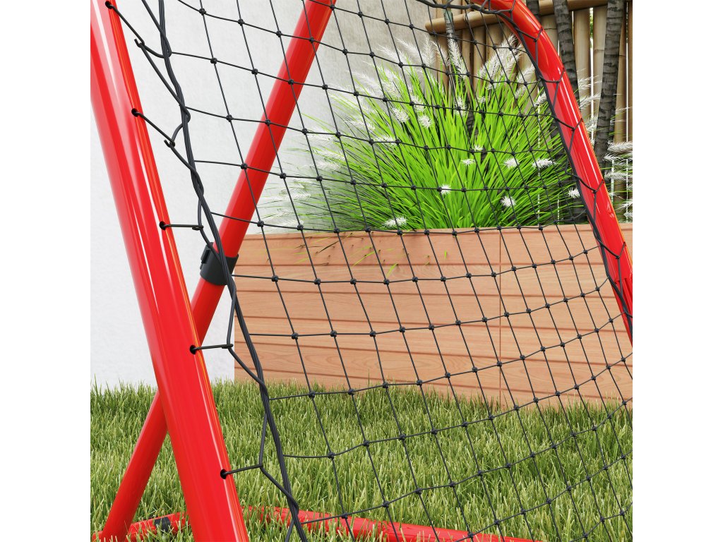 HOMCOM Odrážedlo pro fotbal, skládací fotbalové odražedlo 63 x 63 cm Nastavitelná fotbalová branka pro baseball basketbal, kovová, červená barva
