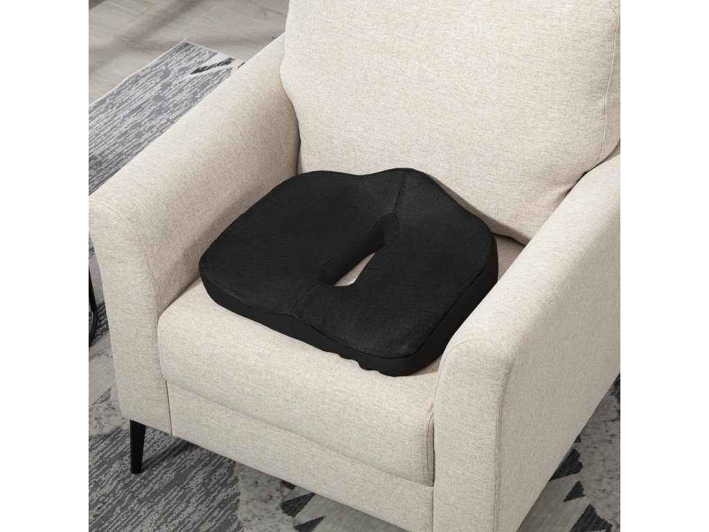 HOMCOM Ortopedický sedák Ergonomický sedák na kancelářskou židli, do auta a podobně, polštářek na kostrč z paměťové pěny na kostrč, ischias, hemoroidy, úleva od bolesti zad, černý | Aosom