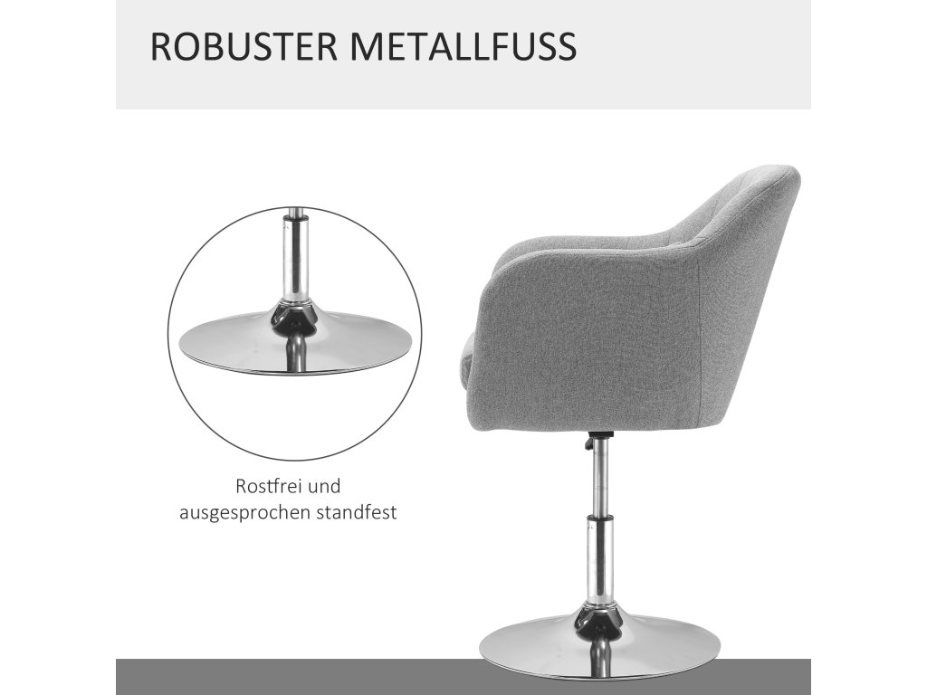 HOMCOM otočná židle, výškově nastavitelná otočná židle, akcentní židle v retro designu, polohovací křeslo s opěradlem do obývacího pokoje, lněné, šedé| Aosom