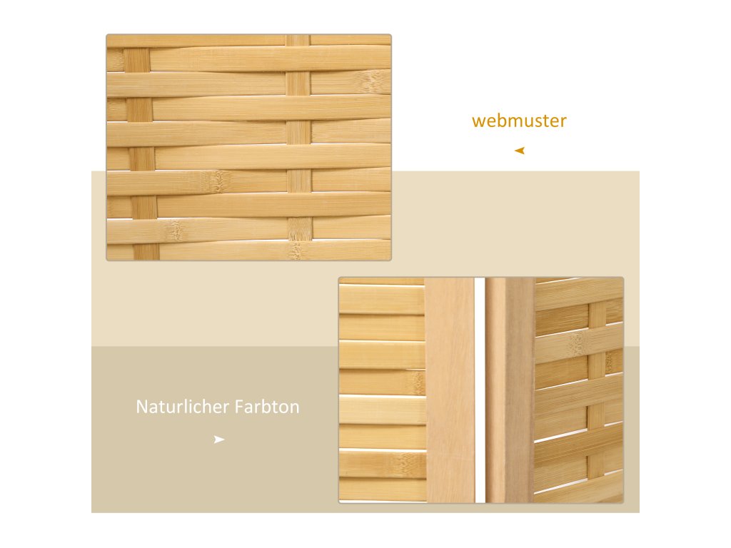 - Vysoce kvalitní materiál: Tento rozdělovač místností je vyroben z oboustranně tkaného bambusu spojeného kovovými panty a protiskluzovými nožkami, je pevný a hladký a umožňuje cirkulaci vzduchu
