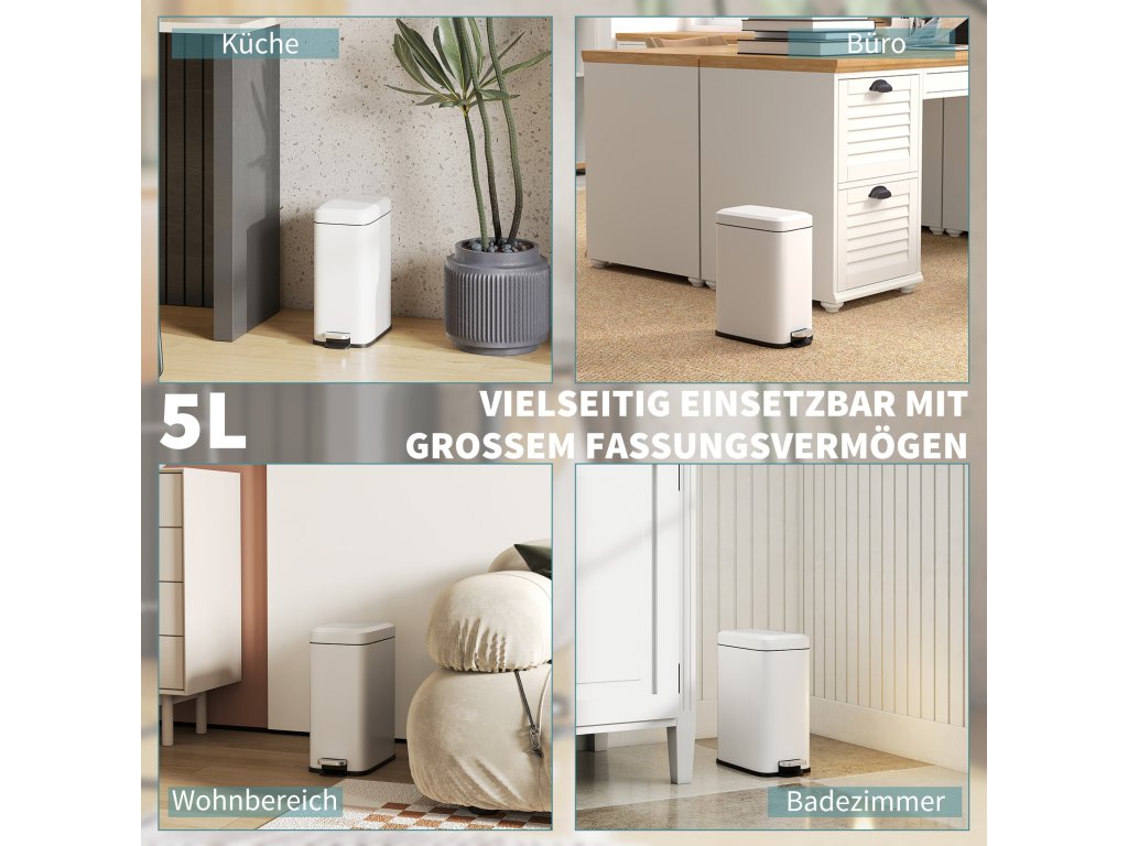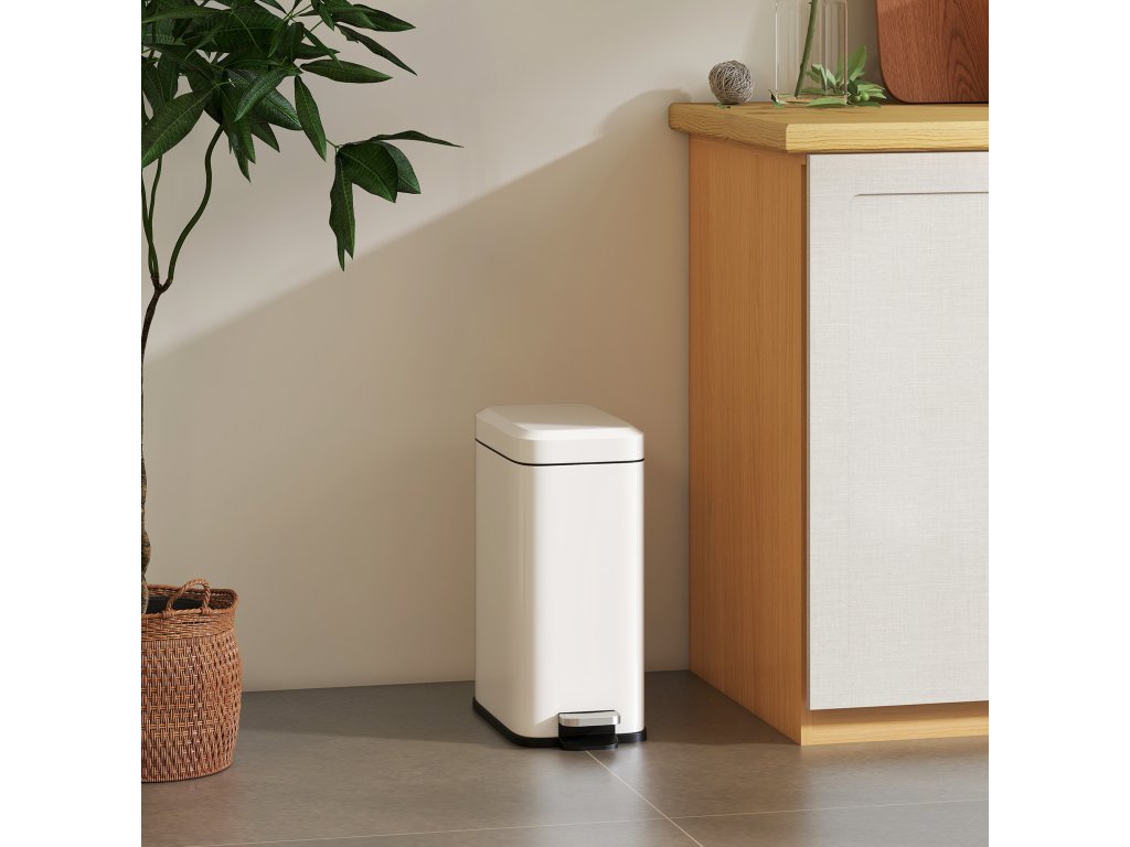 HOMCOM Pedálový odpadkový koš 5 l s víkem a nožním pedálem, kovový vnitřní koš v bílé barvě 29,2x14x32 cm, ideální do obývacího pokoje a kanceláře | Aosom.de