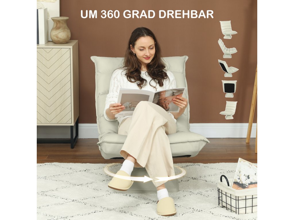 HOMCOM podlahová pohovka podlahové křeslo s nastavitelným opěradlem otočné meditační křeslo relaxační křeslo do obývacího pokoje kancelář béžová 62 x 70 x 95 cm | Aosom.de