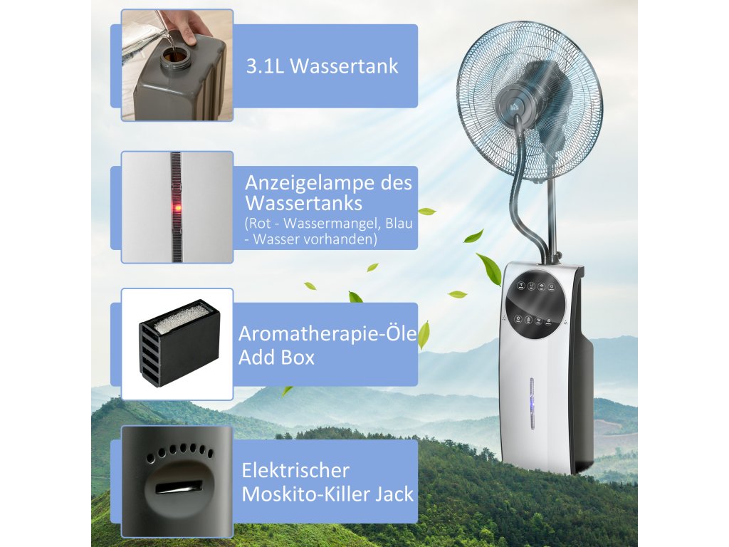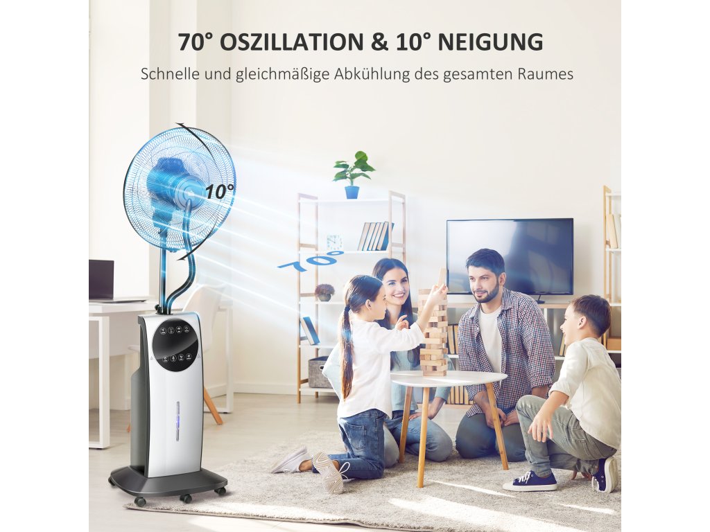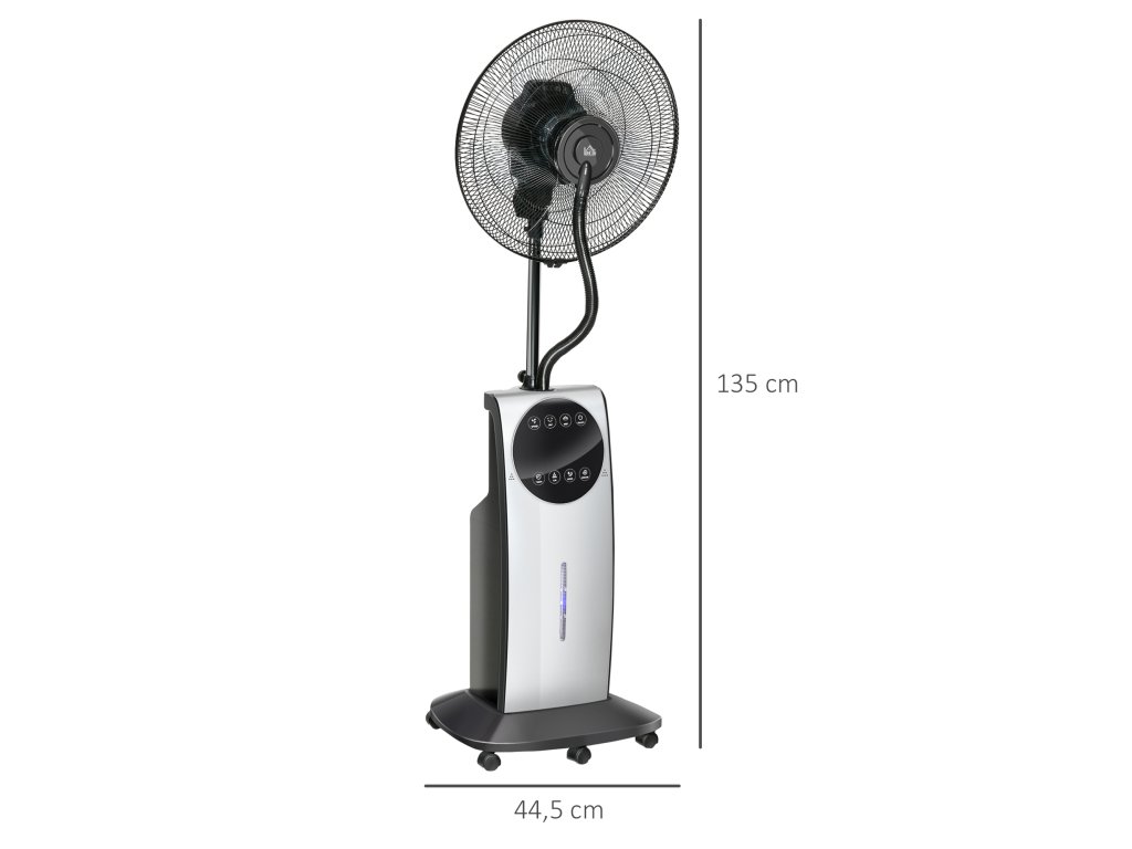 Tento podstavný ventilátor s funkcí mlžení s funkcí proti komárům od společnosti HOMCOM vás potěší. Díky nádržce na vodu o objemu 3,1 litru a závěrečnému mlžítku si můžete vychutnat ideální a osvěžující vlhkost v místnosti, kam jej chcete umístit. Díky dálkovému ovládání mlhovače již nemusíme vstávat z pohovky nebo odcházet od hrnce, když se vaří, abychom obnovili normální výkon.