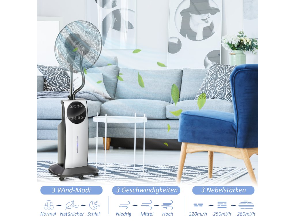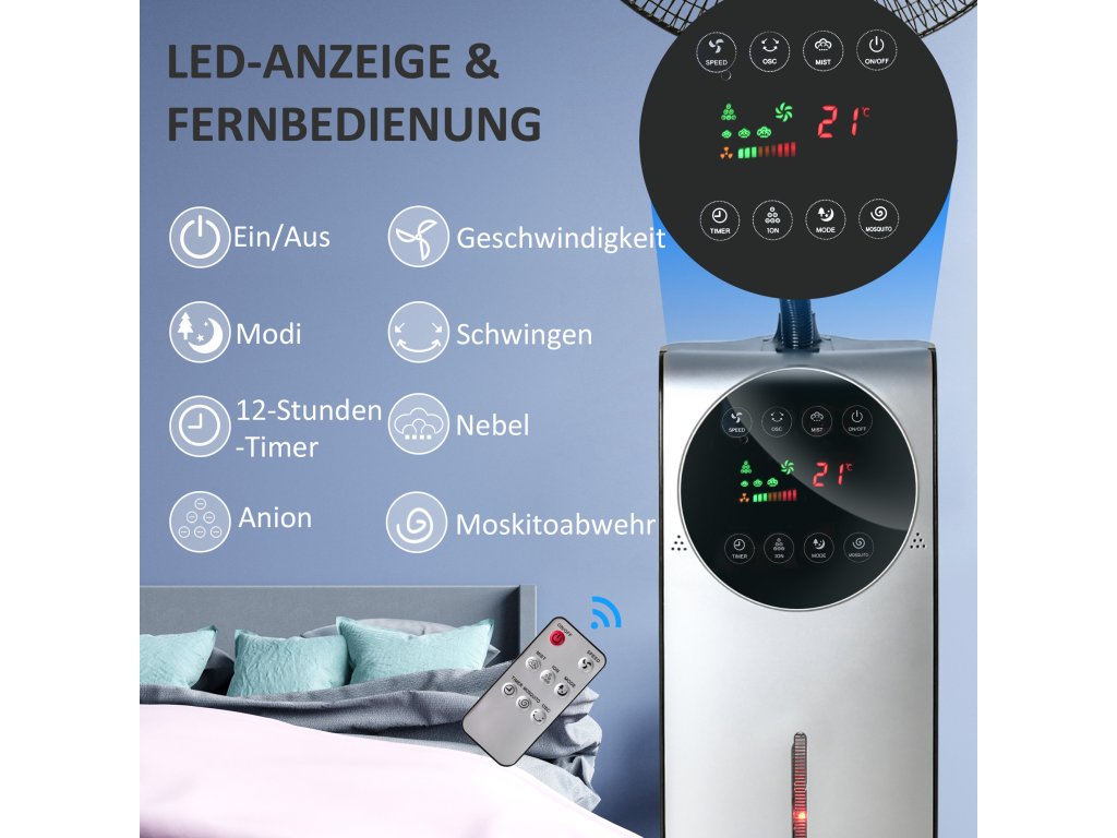 - mlhový ventilátor 2 v 1: stojanový ventilátor 2 v 1 s funkcí mlhy, ideální pro lepší spánek za horkých letních nocí bez vlivu na kvalitu spánku (výkonný, 90 W a tichý)