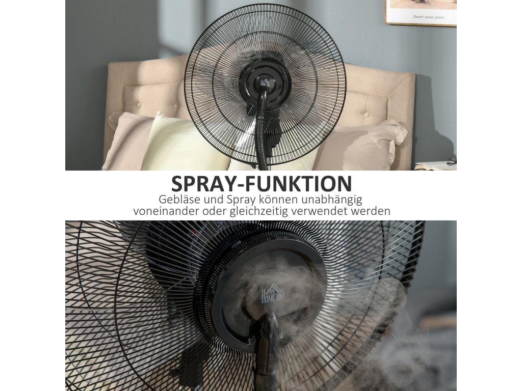 HOMCOM Podstavný ventilátor s rozprašovací mlhou 90W Chladicí ventilátor 3 režimy proudění vzduchu 31L nádrž na vodu Kolečka Dálkové ovládání Černá | Aosom.de