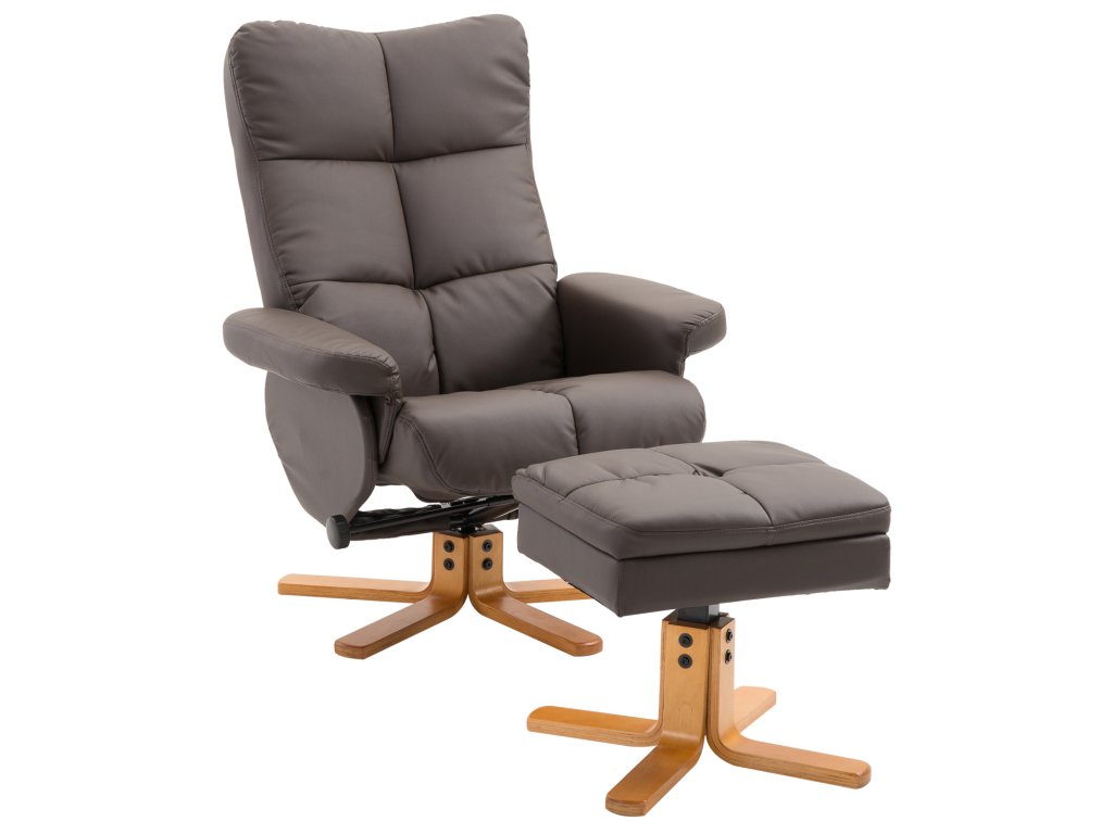 HOMCOM polohovací křeslo s taburetem a úložným prostorem, TV křeslo s funkcí polohování, otočné o 360°, dřevěný rám PU, hnědé 80x86x99cm pro pohodlí a relaxaci | Aosom.de