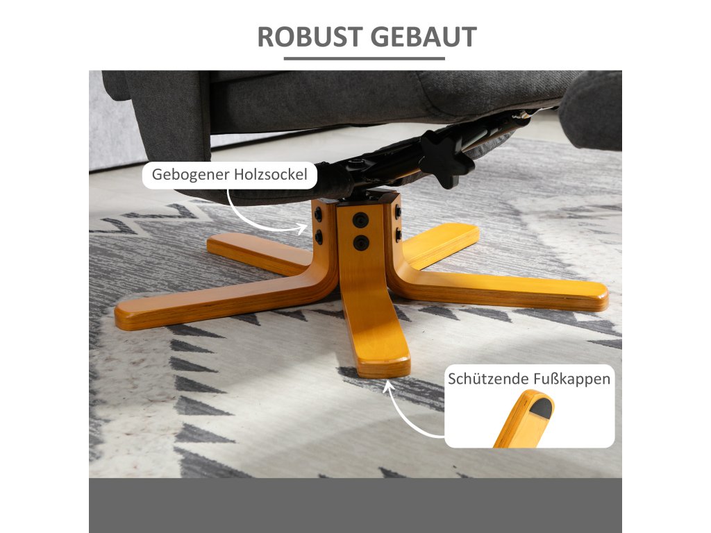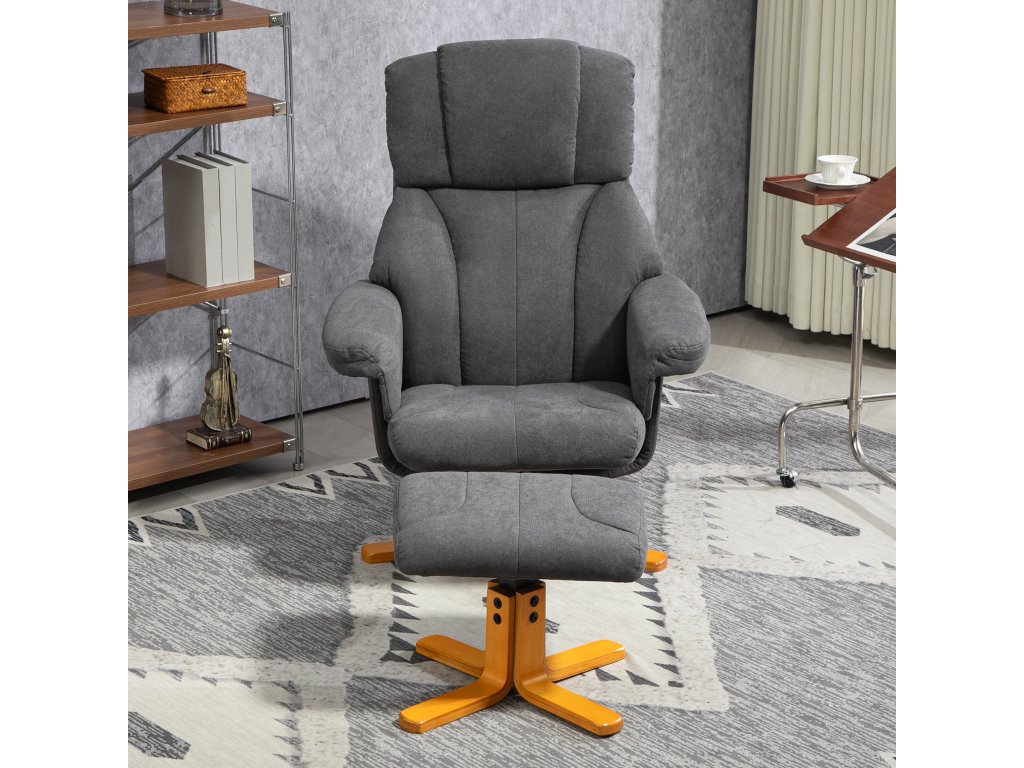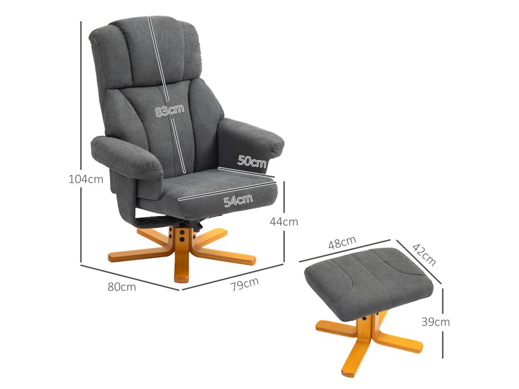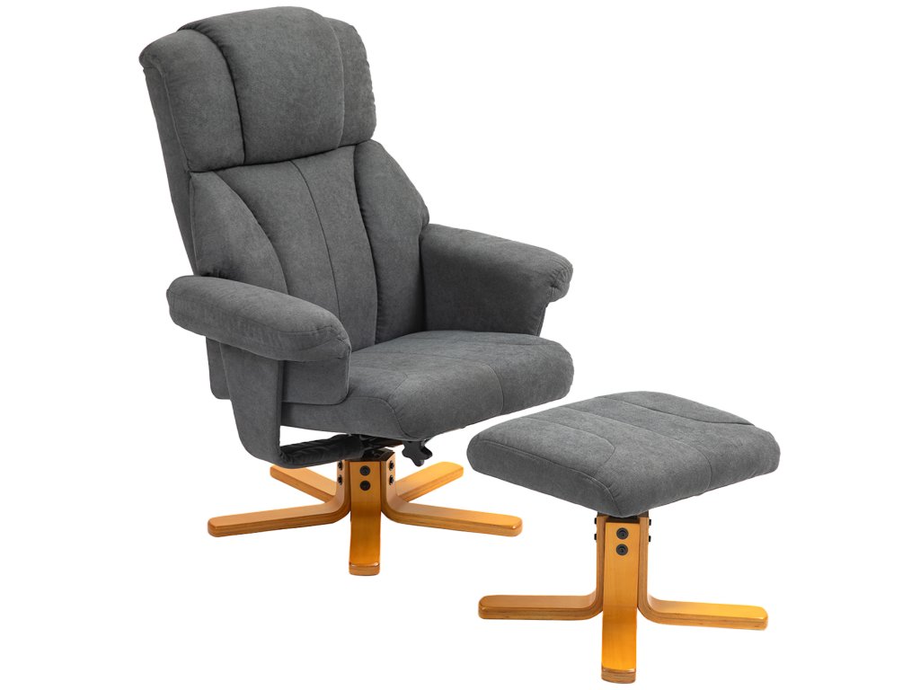 HOMCOM polohovatelné křeslo s funkcí sklápění, polohovatelné křeslo s taburetem, TV křeslo, max. nosnost 150 kg, do obývacího pokoje, ložnice, 79 x 80 x 104 cm, tmavě šedá barva