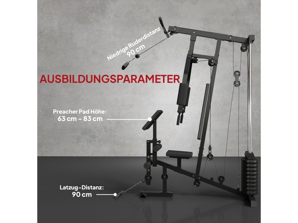 S touto multifunkční tréninkovou stanicí od společnosti HOMCOM můžete mít svůj trénink pod kontrolou doma i v kanceláři. S tímto fitness zařízením můžete trénovat celé tělo. Můžete na něm trénovat paže, nohy, pas, boky i břicho. Různé vzdálenosti a úhly lze nastavit tak, aby splňovaly vaše různé potřeby. Užijte si domácí trénink v hale a udržujte své tělo zdravé.