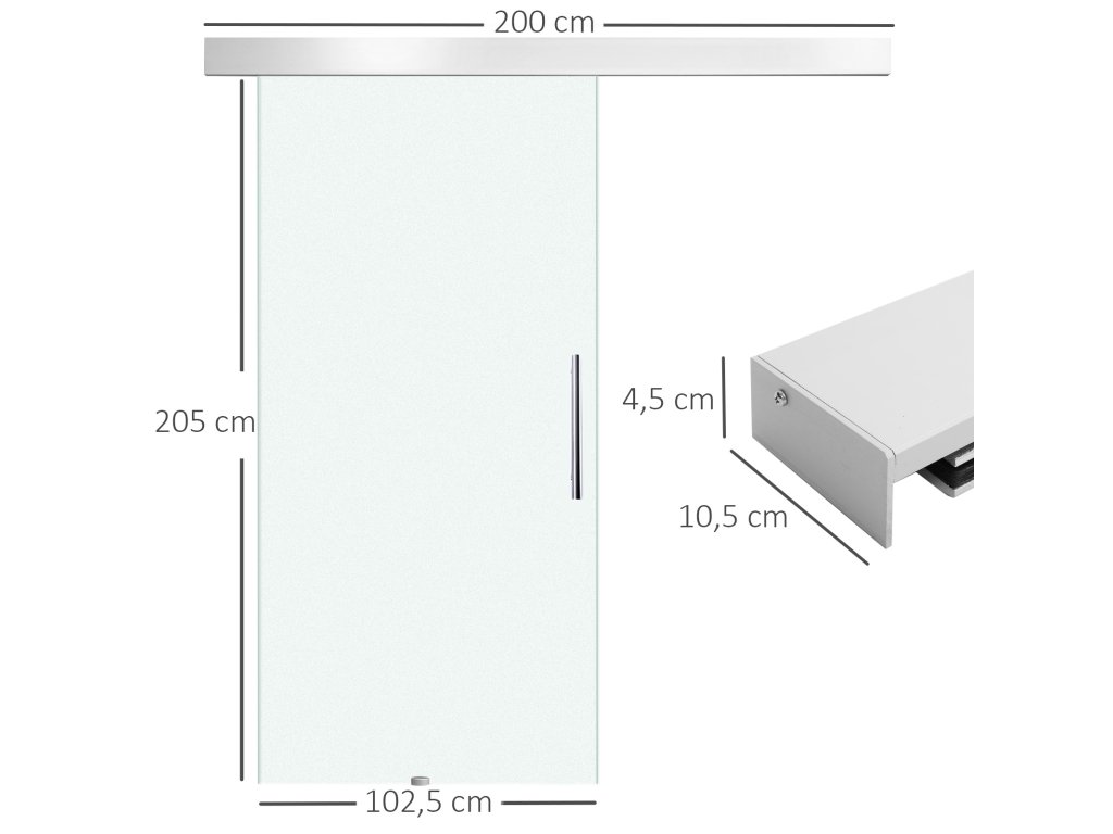 HOMCOM Posuvné skleněné pokojové dveře s madlem, jednostranně satinované 102,5x205 cm, moderní a elegantní pro obývací pokoje | Aosom.de
