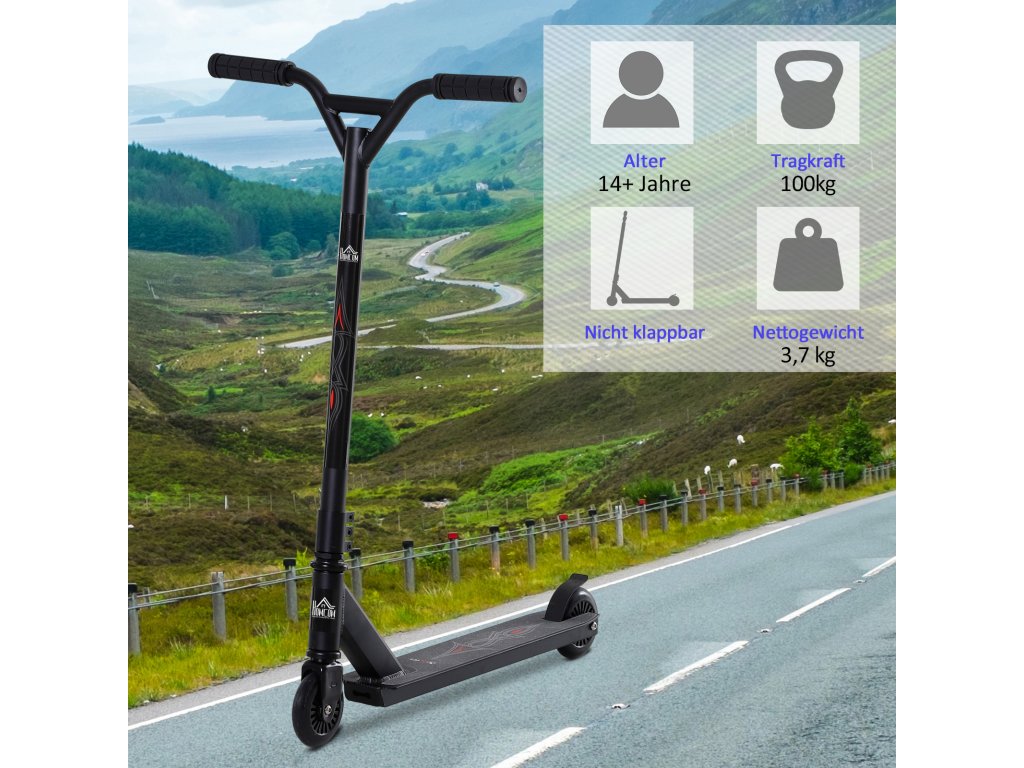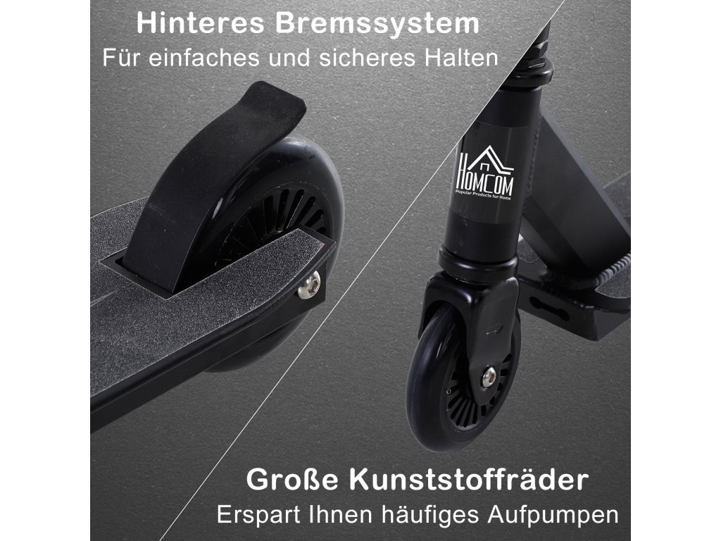 HOMCOM Pro stunt koloběžka šlapací koloběžka pro freestyle triky se 100mm PU kolečky hliníková černá pro děti a dospělé | Aosom.de