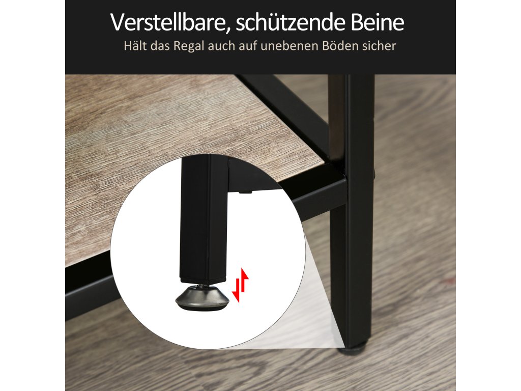 - Odolný materiál: Tento úložný regál je vyroben z robustního kovového rámu a pevné dřevotřísky, je odolný a snadno se čistí. Zvýšené nohy zabraňují poškození vlhkostí. Připojené nastavitelné ochranné nožičky zajišťují, že police stojí vzpřímeně, aniž by se kývala.