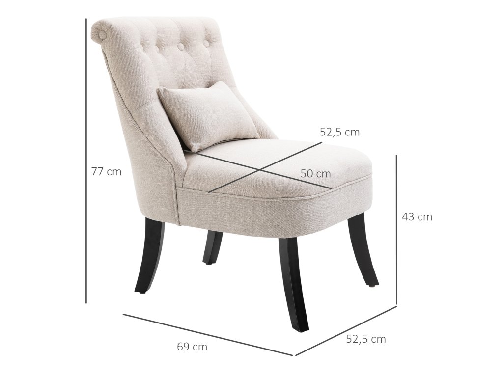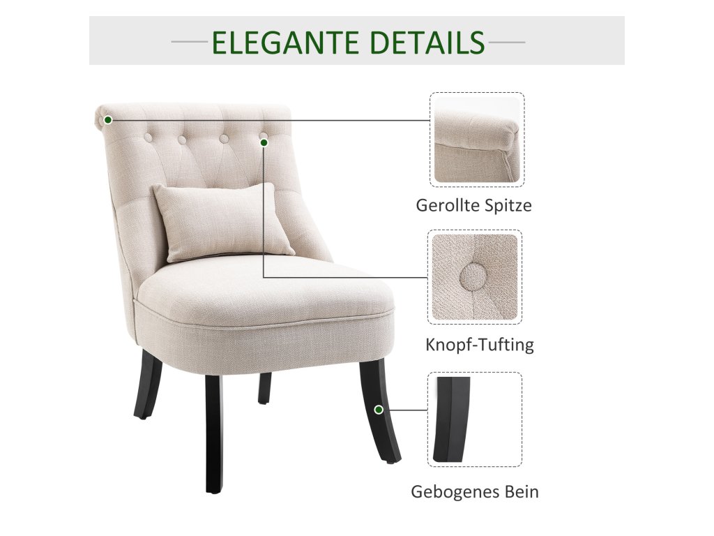 HOMCOM Relaxační křeslo, křeslo s opěrným polštářem, lenoška se vzhledem lnu, dřevěné nohy, do obývacího pokoje, ložnice, 52,5 x 69 x 77 cm, krémově bílá