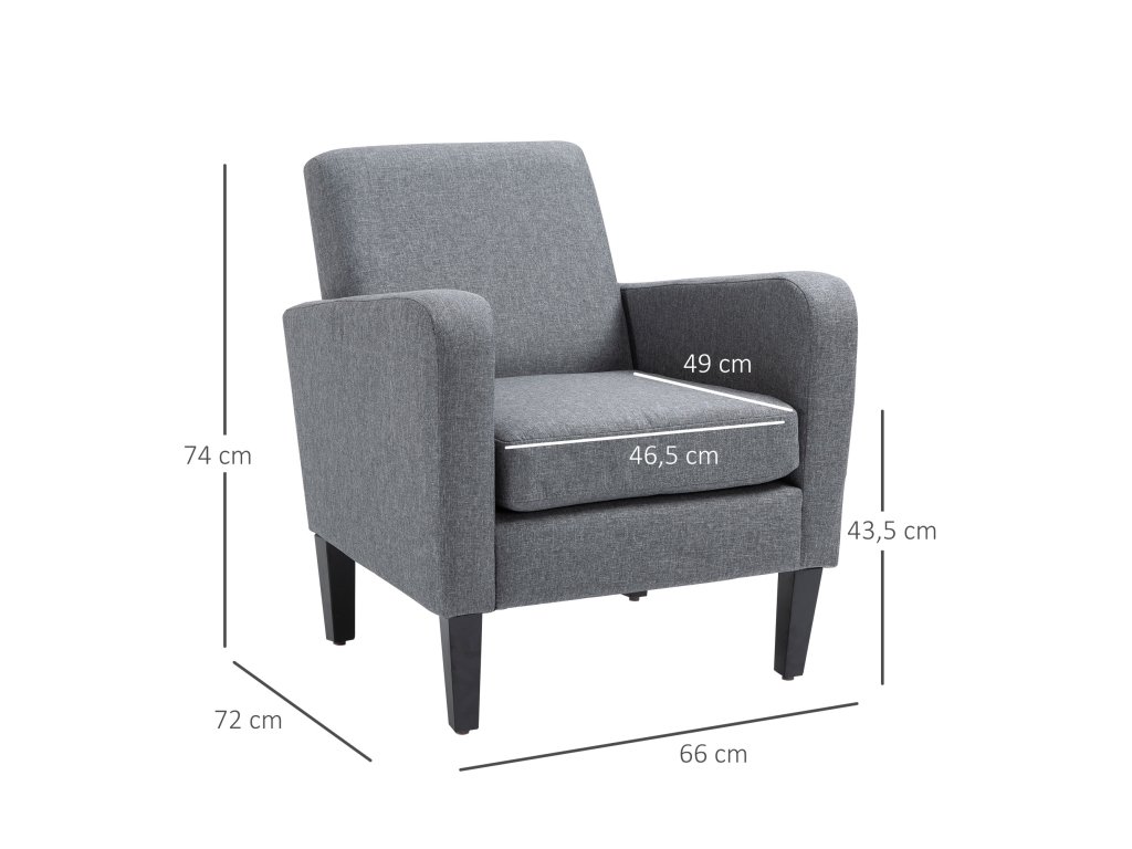 HOMCOM Relaxační křeslo s čalouněním, dřevěné nohy, lněná tkanina, světle šedá, 66x72x74cm| Aosom