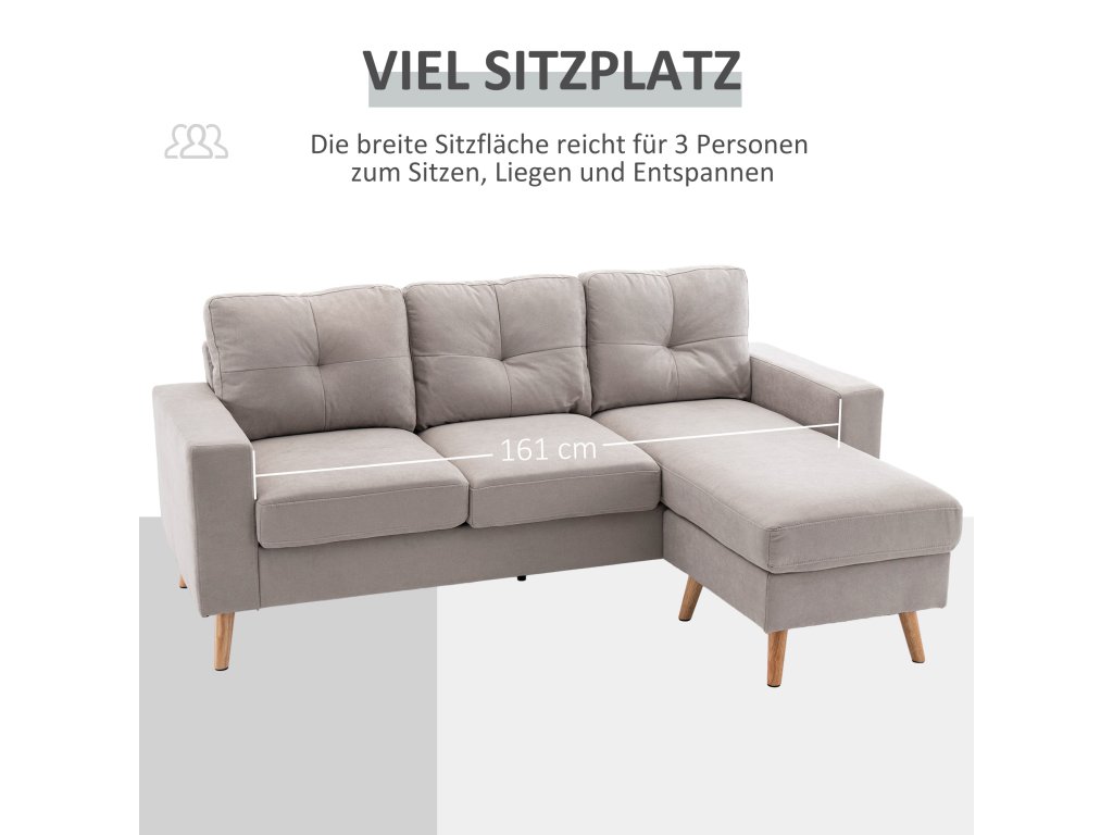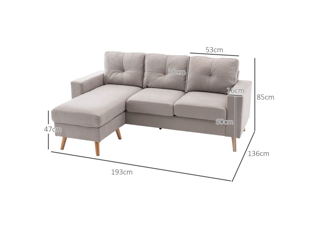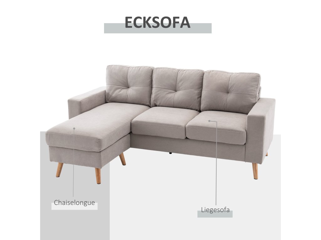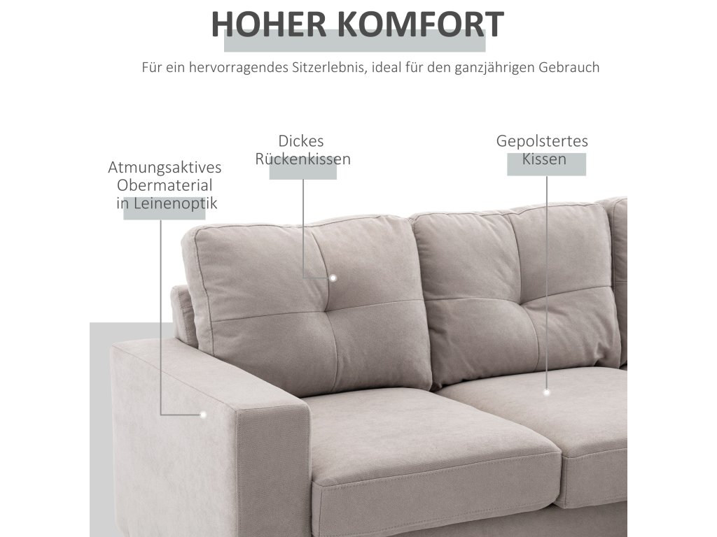 Třímístná rohová pohovka od společnosti HOMCOM je ideální pro filmové večery s přáteli nebo pohodové večery při čtení. Dřevěný rám je měkce čalouněný a má prodyšný lněný potah, který je snímatelný a pratelný. Ideální do každého prostředí!