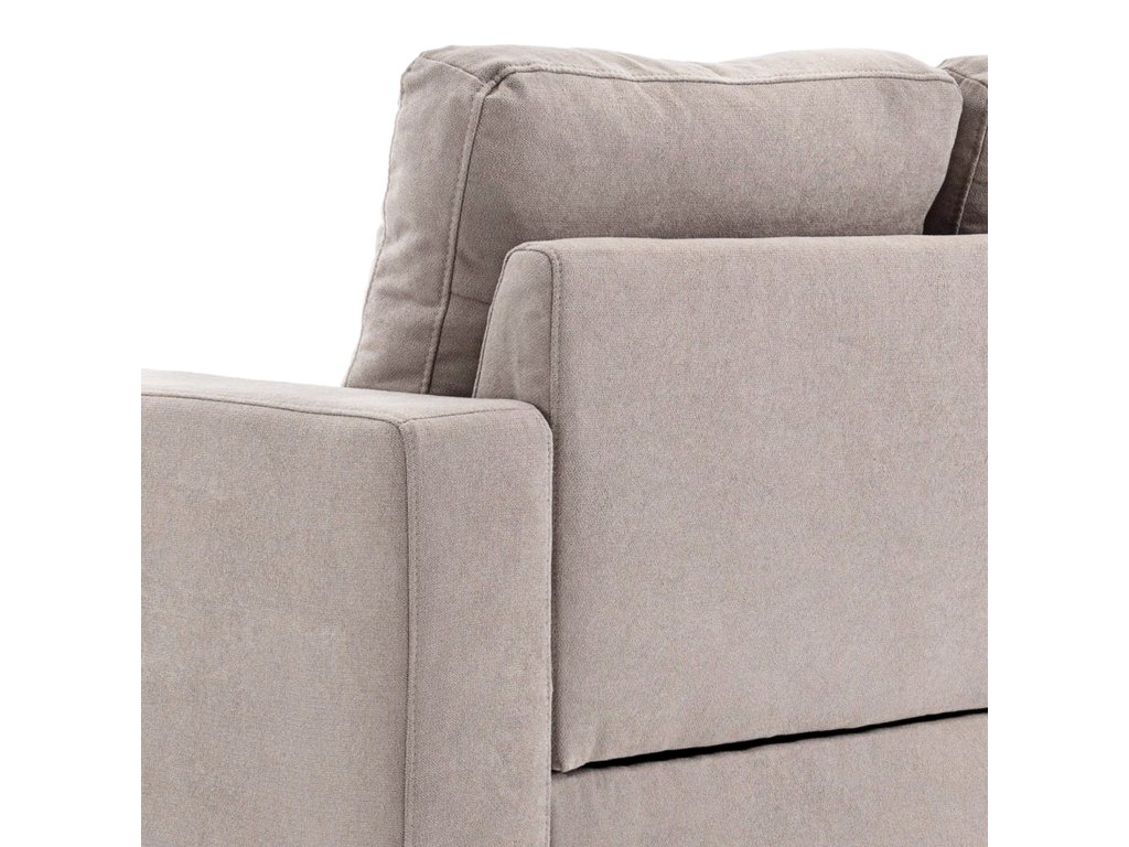 - Pohodlné: Sedák a opěradla jsou měkce polstrované a čalouněné prodyšnou tmavě šedou látkou lněného vzhledu. Polštáře mají snímatelné potahy a potah je pratelný.