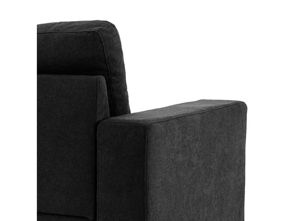 - Pohodlné: Sedák a opěradla jsou měkce polstrované a potažené prodyšnou černou látkou lněného vzhledu. Polštáře mají snímatelné potahy a potah je pratelný.