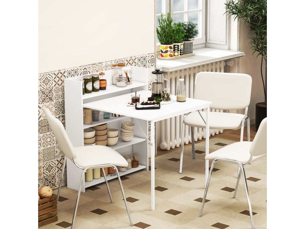 - Skládací konstrukce: Tento skládací jídelní stůl lze bez námahy přeměnit z kompaktního kusu nábytku na plnohodnotný kuchyňský stůl, ke kterému se pohodlně usadí až tři osoby. Ideální pro malé obytné prostory