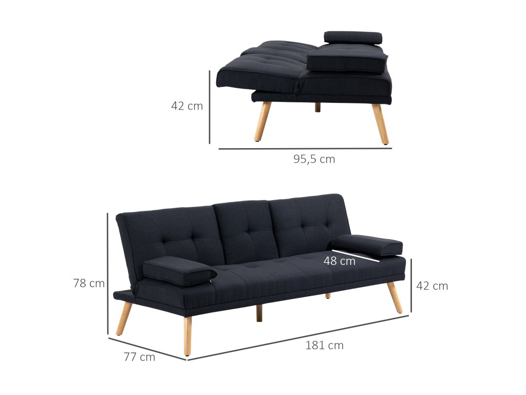 - Prostorná pro každého: Tato rozkládací pohovka s velkorysou sedací plochou 181 cm nabízí místo až pro tři osoby - ideální pro útulné filmové večery nebo relaxační odpoledne s přáteli
