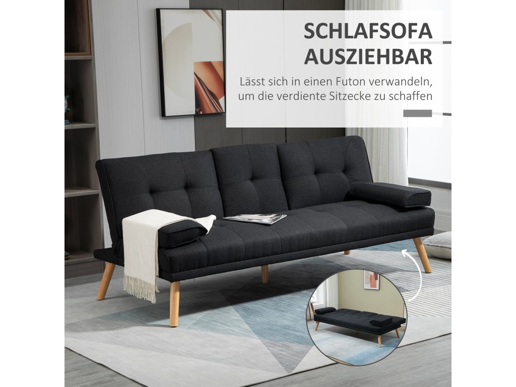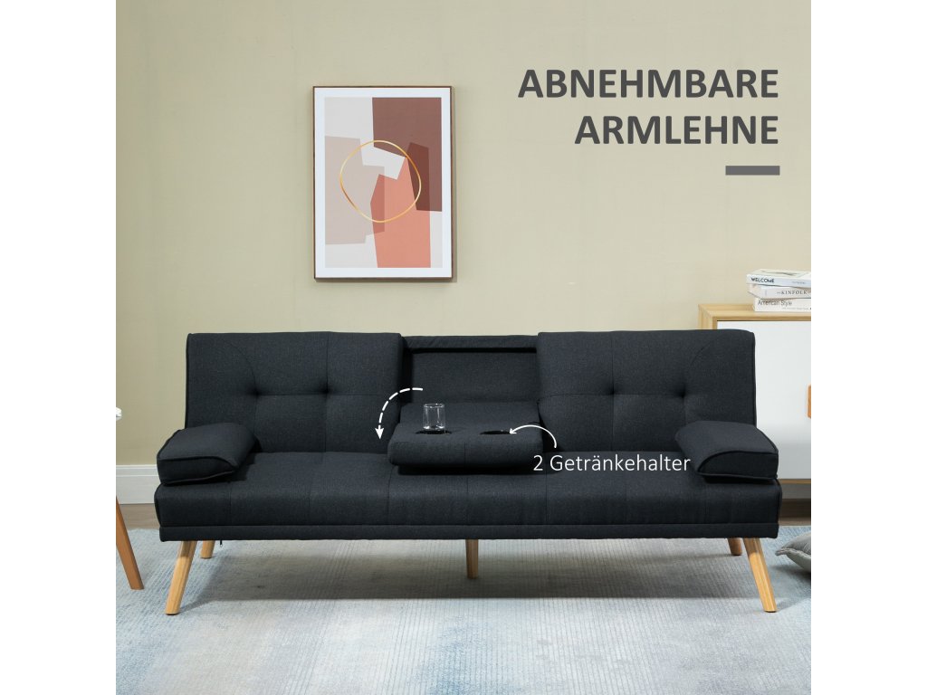 HOMCOM Rozkládací pohovka, 3místná rozkládací pohovka s rozkládacím stolkem, držák na nápoje, rozkládací pohovka se vzhledem lnu, v designu Scandi, nosnost do 250 kg, do obývacího pokoje, šedá barva
