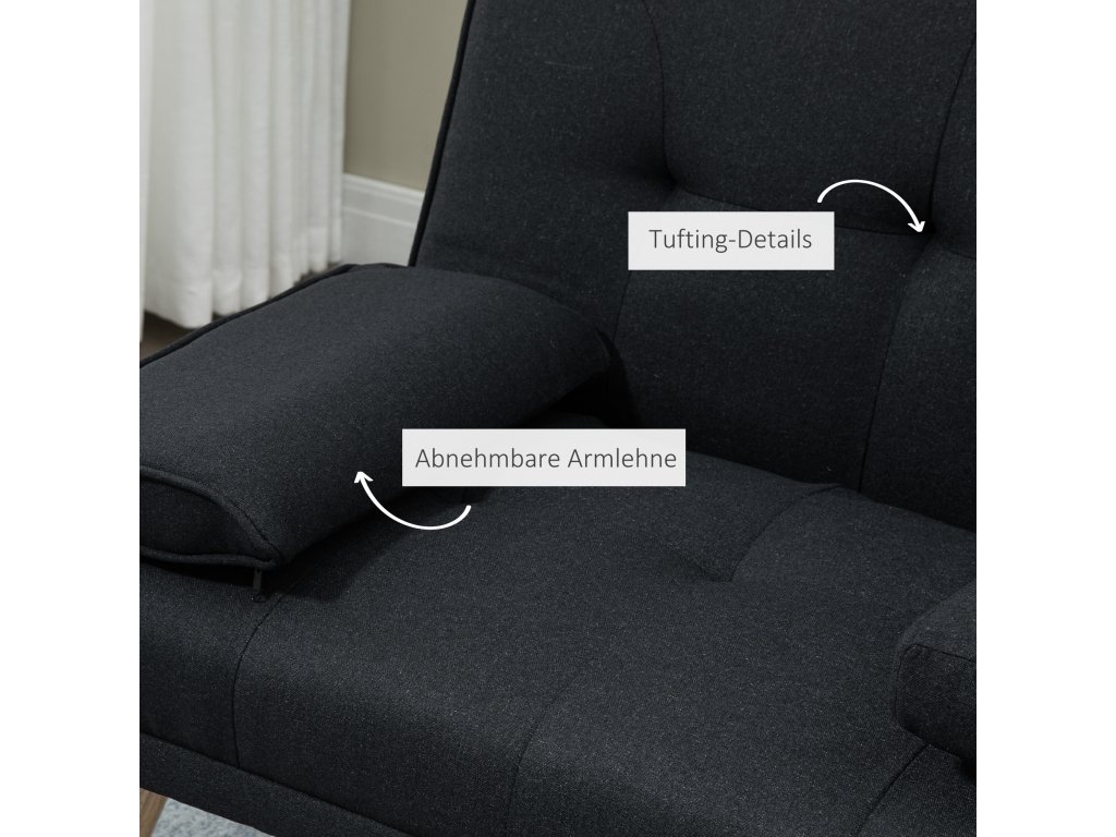 Tato elegantní rozkládací pohovka od společnosti HOMCOM nabízí prostor až pro tři osoby, ať už jde o útulné večery s přáteli nebo odpočinkové noci. Třístupňově nastavitelné opěradlo umožňuje snadné přepínání mezi sezením, polohováním a spaním. Robustní rám a nohy z masivního dřeva zaručují stabilitu, zatímco hustě polstrovaný sedák nabízí maximální pohodlí. Střední část opěradla se navíc přemění na praktický boční stolek s držáky na nápoje.
