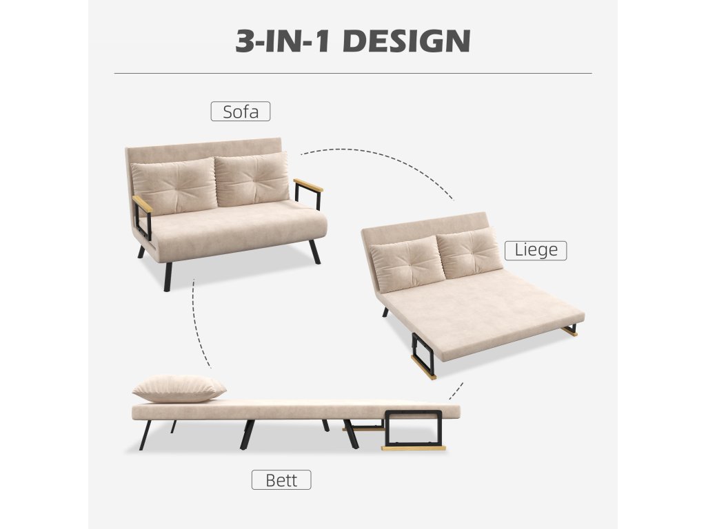 HOMCOM Rozkládací pohovka, polohovací s funkcí lůžka, rozkládací pohovka, zádové polštáře, čalouněná pohovka s nastavitelným opěradlem, béžová, 102 x 73 x 81 cm| Aosom