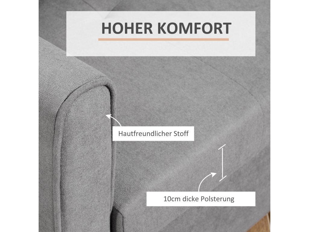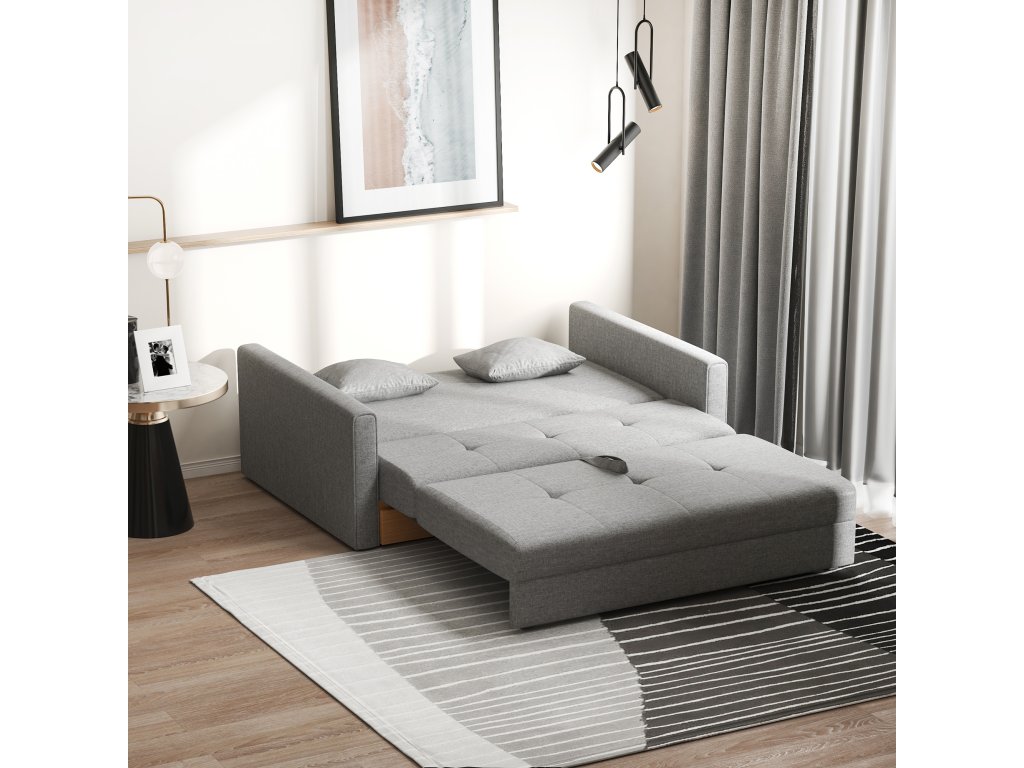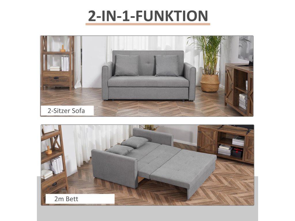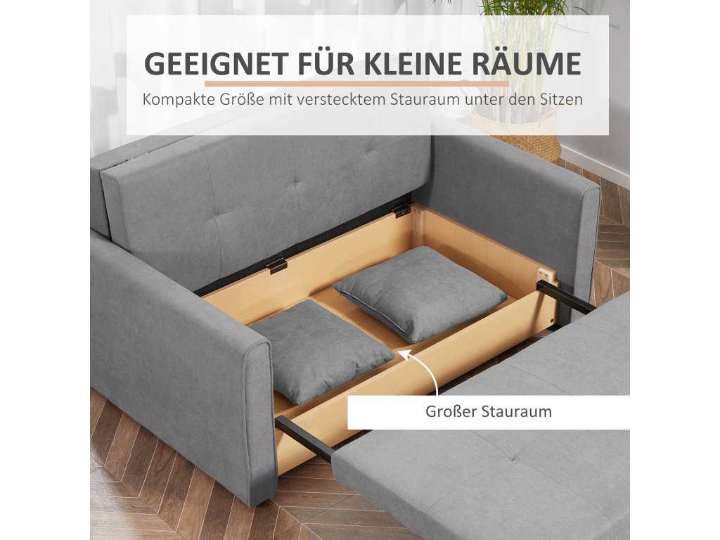 HOMCOM Rozkládací pohovka 2místná s funkcí lůžka, úložným prostorem a opěrnými polštáři, polybavlna, dřevo, šedá, 152x101x81cm| Aosom