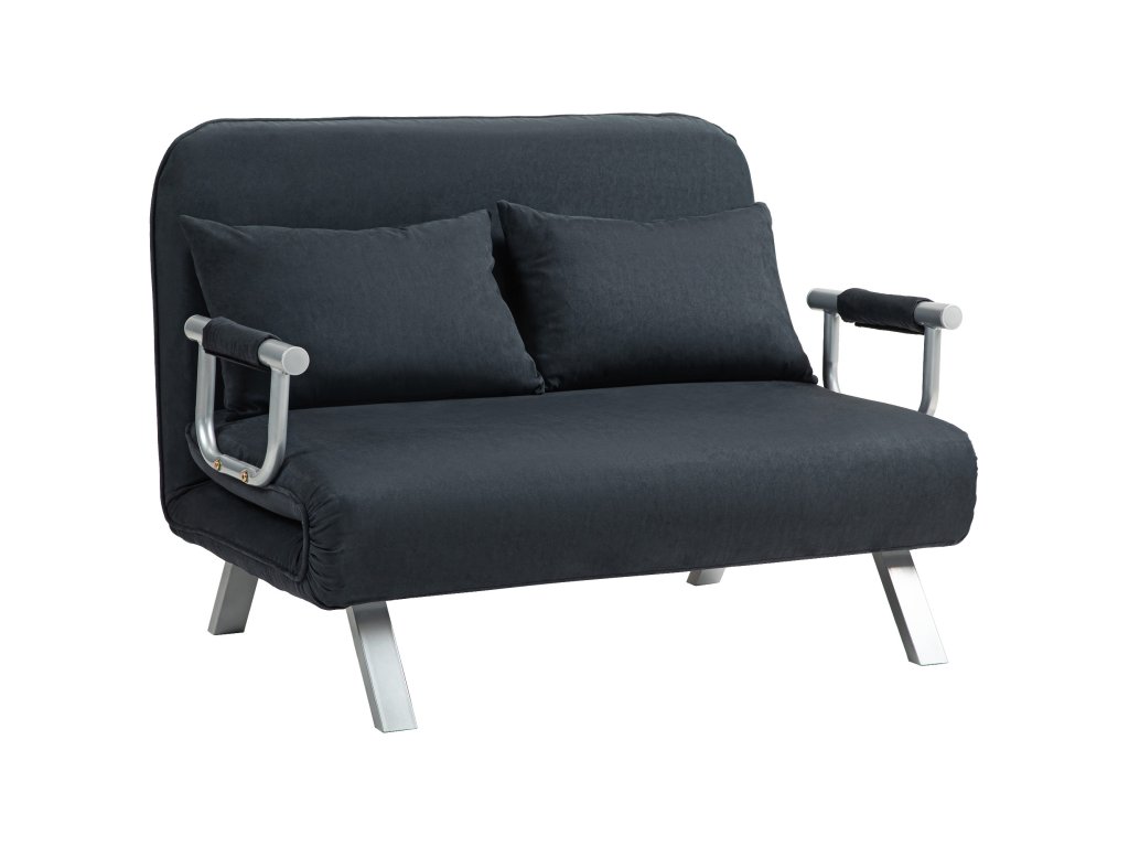 HOMCOM Rozkládací pohovka Rozkládací pohovka s polohovatelným opěradlem, házecí polštář, 2místná pohovka s funkcí spaní, sametový vzhled, područky, pohovka do obývacího pokoje, ložnice, černá barva