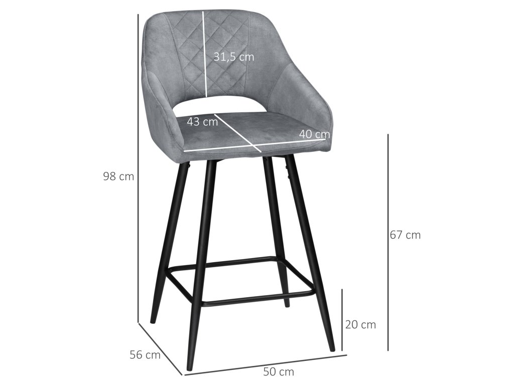Maximalizujte prostor u kuchyňské linky nebo v jídelně pomocí těchto bistro stoliček s opěradlem od společnosti HOMCOM. Ať už chcete ráno začít příjemnou snídaní nebo večer zakončit drinkem, tato elegantní sada barových stoliček splní vaše potřeby. Čalounění v látce sametového vzhledu pro stylový vzhled. Spodní podnožka zabraňuje svěšení nohou a zajišťuje uvolněné sezení.