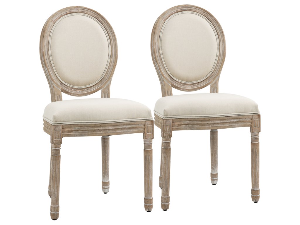 HOMCOM sada 2 jídelních židlí vintage kuchyňská židle čalouněná židle s opěradlem len-dotek kaučukovník krémová bílá+přírodní 49 x 56 x 96 cm | Aosom