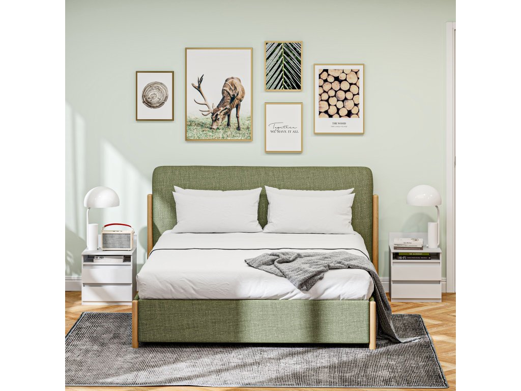 - ✔ Dvě zásuvky a otevřená přihrádka na nočním stolku nabízejí více možností úložného prostoru