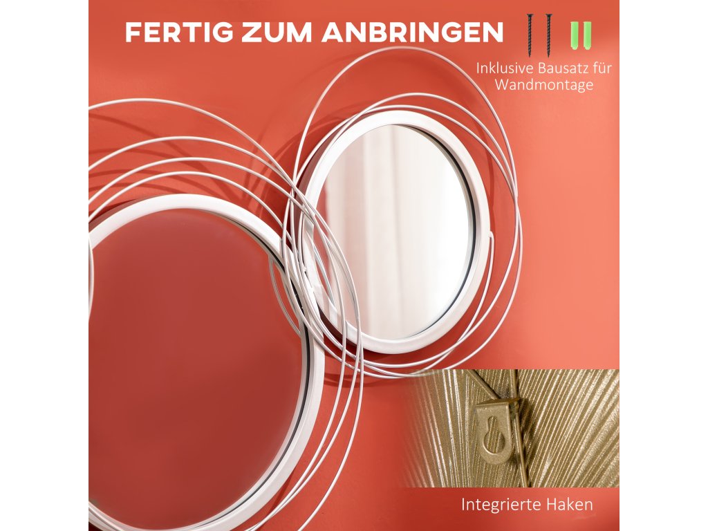 Chcete dodat svému domovu stylový nádech? Pak je tato dekorativní kovová fototapeta od společnosti HOMCOM to pravé! Každé zrcadlo nástěnné dekorace je orámováno krásným rámem ve stříbrné barvě. Na zadní straně jsou háčky pro zavěšení a součástí balení je praktická sada pro montáž na zeď. Nástěnná zrcadla jsou tak připravena k okamžitému použití a harmonicky zapadnou do vašeho interiéru, aby vaše okolí vypadalo ještě elegantněji a zářivěji.