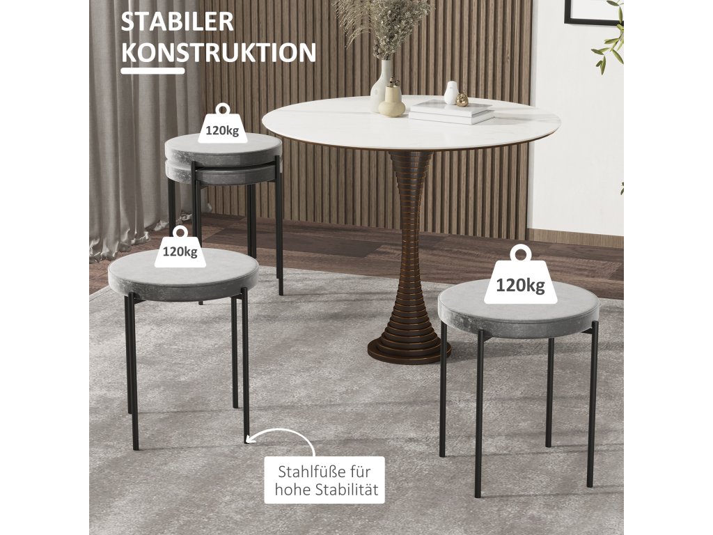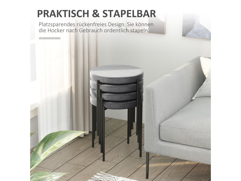 HOMCOM Sada 4 jídelních židlí Stohovatelná kuchyňská židle s čalouněným sedákem sametového vzhledu, šedý kov, ideální do kuchyně a jídelny 41,5 x 41,5 x 46 cm | Aosom.de