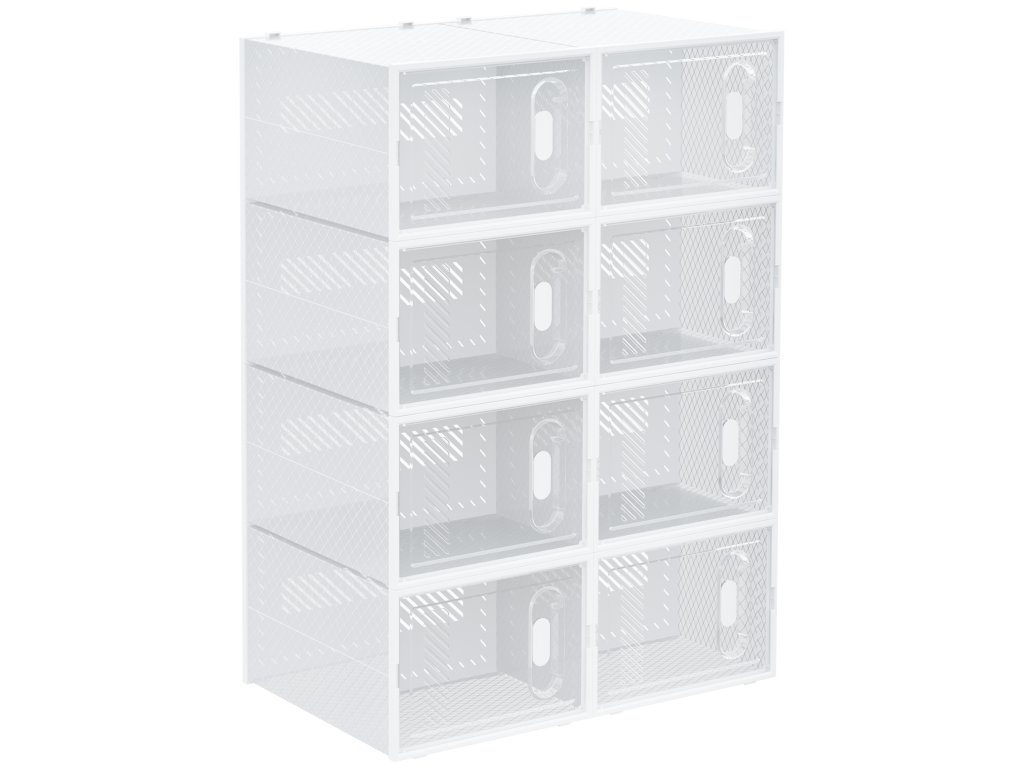 - Už žádný chaos: Sami se rozhodněte, jak chcete uspořádat své boty díky spojení všech 8 úložných boxů do jednoho celku. Stohovatelná konstrukce regálového systému šetří místo na podlaze, aniž by došlo ke ztrátě úložného prostoru, a boxy lze používat i jednotlivě