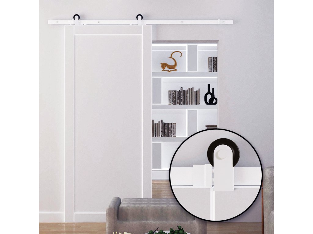 HOMCOM Sada kování pro posuvné dveře 183 cm kompletní sada s kolejnicemi, válečky, zarážkou kolejnic, podlahovým blokem, sadou šroubů, systém posuvných dveří z uhlíkové oceli Bílá | Aosom