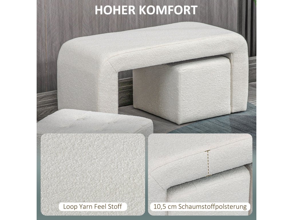 HOMCOM sada podnožek 3 ks, otoman se 3 taburety, čalouněný taburet do obývacího pokoje ložnice, elegantní bílý | Aosom.de