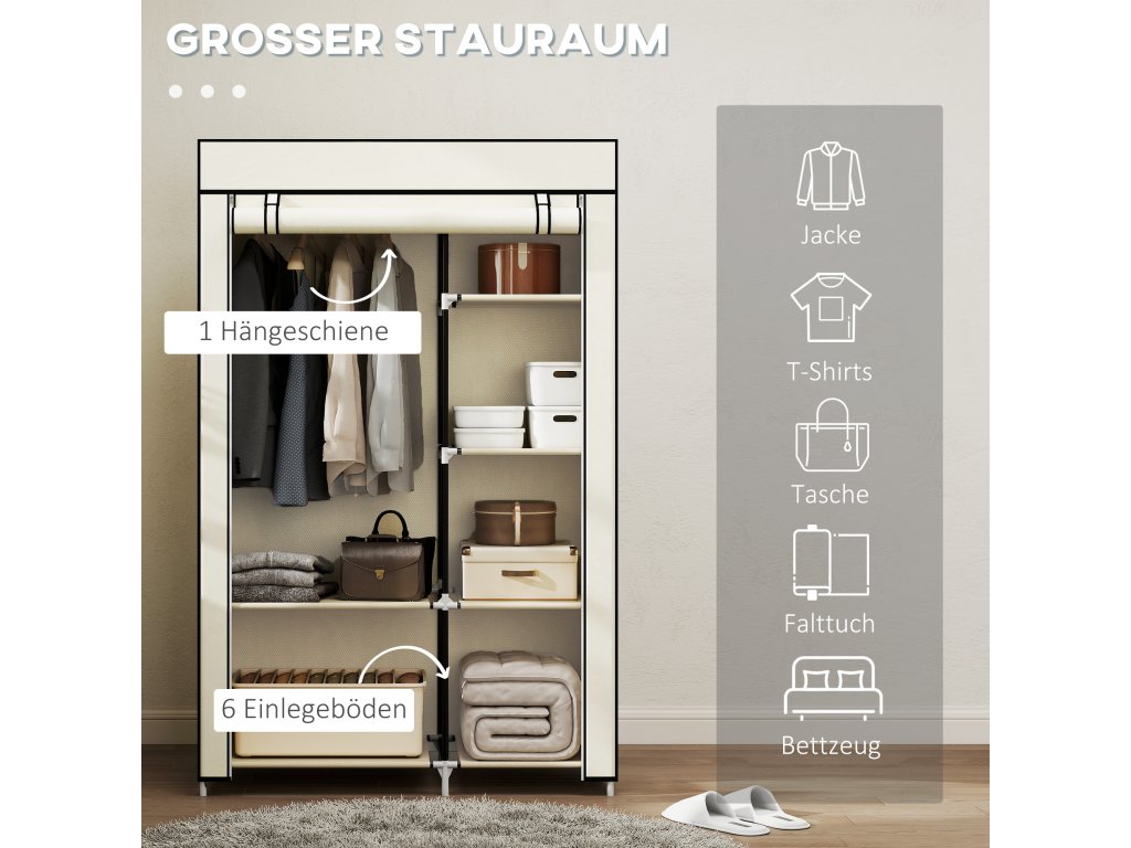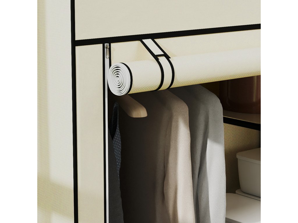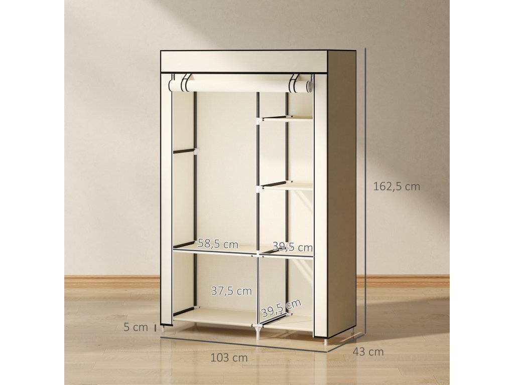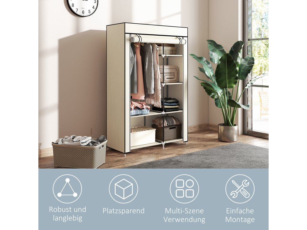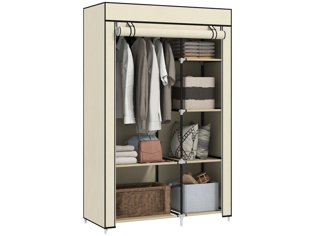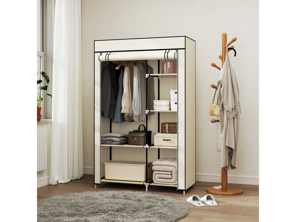 HOMCOM Šatní skříň Látková skládací skříň se 2 tyčemi na šaty a 6 přihrádkami v krémové barvě do ložnice a předsíně | Aosom.de