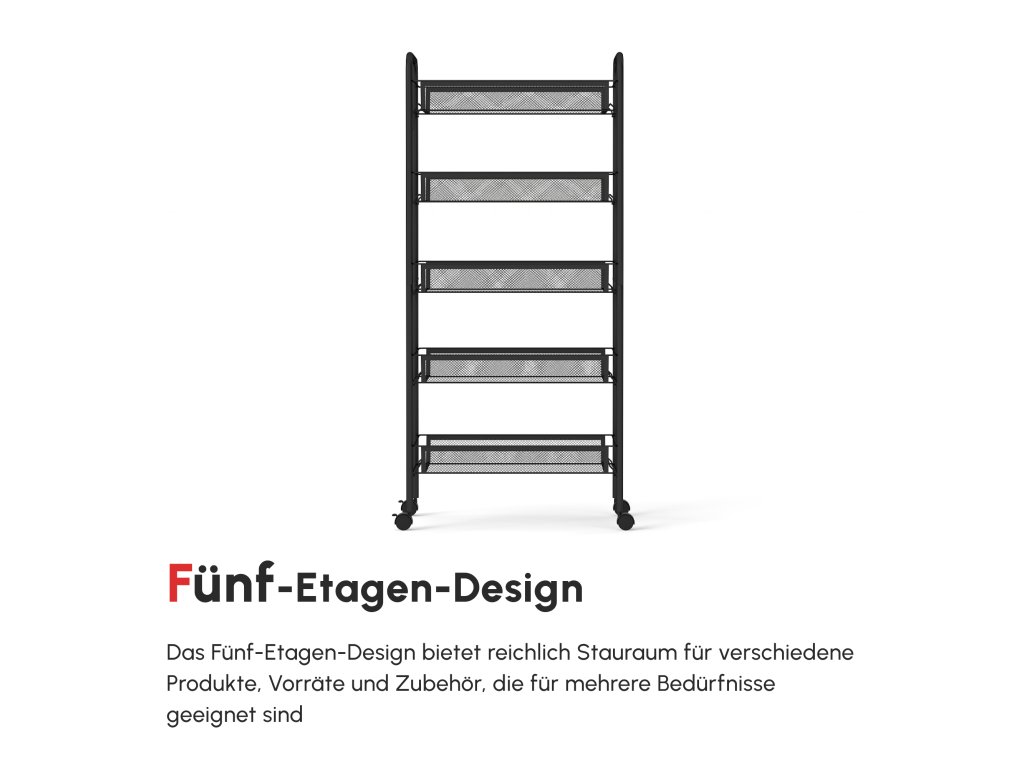 - Všestranný úložný prostor: Tento servisní vozík nabízí díky svým 5 úrovním dostatek prostoru pro kuchyňské náčiní, toaletní potřeby a další předměty denní potřeby. Ideální do kuchyně, jídelny, ložnice, obývacího pokoje, prádelny, garáže a koupelny.