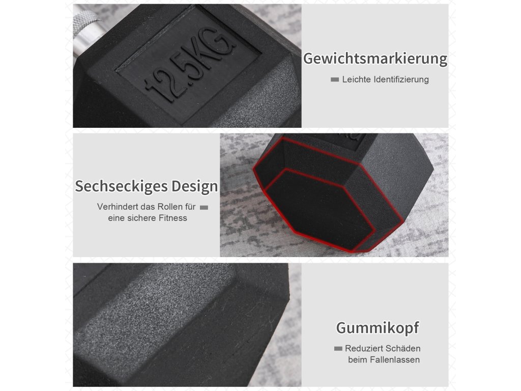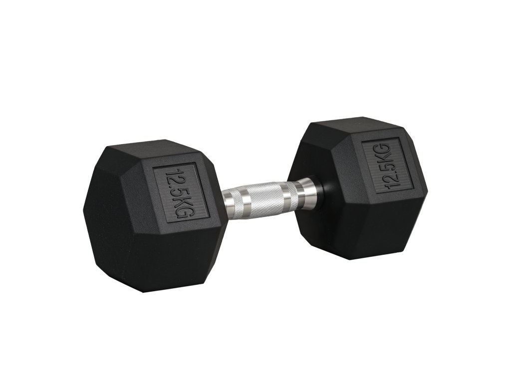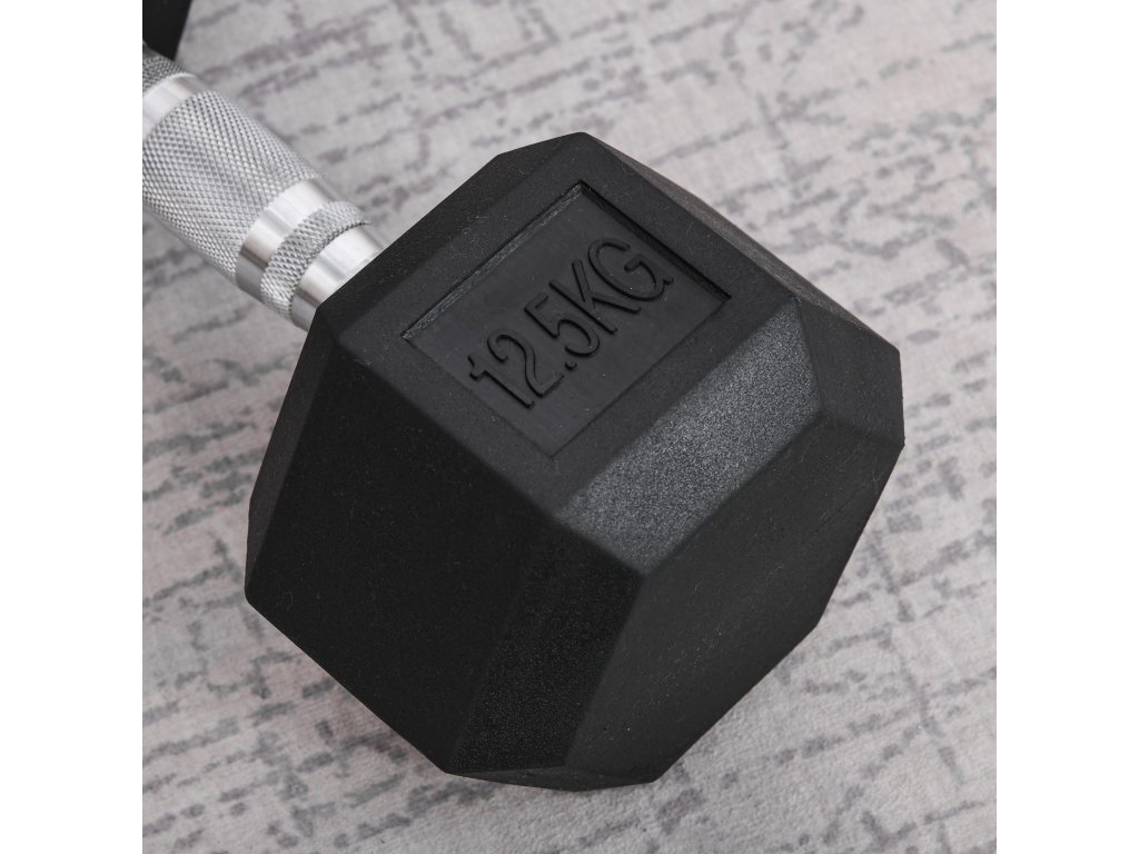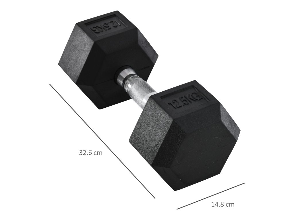 HOMCOM Šestihranná činka litinová činka gumová rukojeť činky vroubkované závaží kovová guma černá 1 x 12,5 KG | Aosom