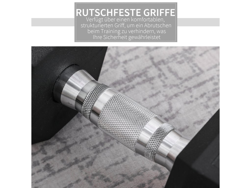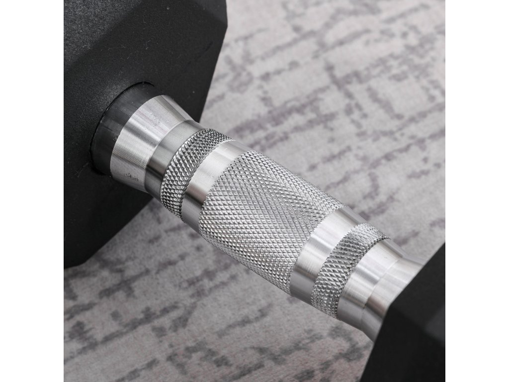 Tato šestihranná činka s gumou je ideální pro váš fitness režim, vhodná pro cvičení doma, v posilovně i v kanceláři. Každé závaží je vyrobeno z kovu a gumy, která je odolná a nesnadno poškrábe podlahu. Rýhování zajišťuje vaši bezpečnost při provádění střídavých shybů s činkou, shybů nad hlavou, tricepsových tlaků s činkou apod. Je to ideální způsob, jak provádět cvičební rutinu s činkami.
