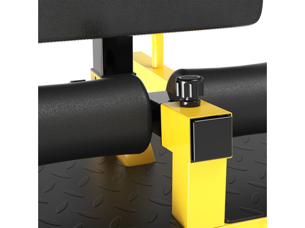 - Stabilní konstrukce: Díky ocelovému rámu je zařízení mimořádně stabilní a odolné. Polstrování na lýtkách, nártech a rukou vás podrží a ochrání i při intenzivním tréninku.